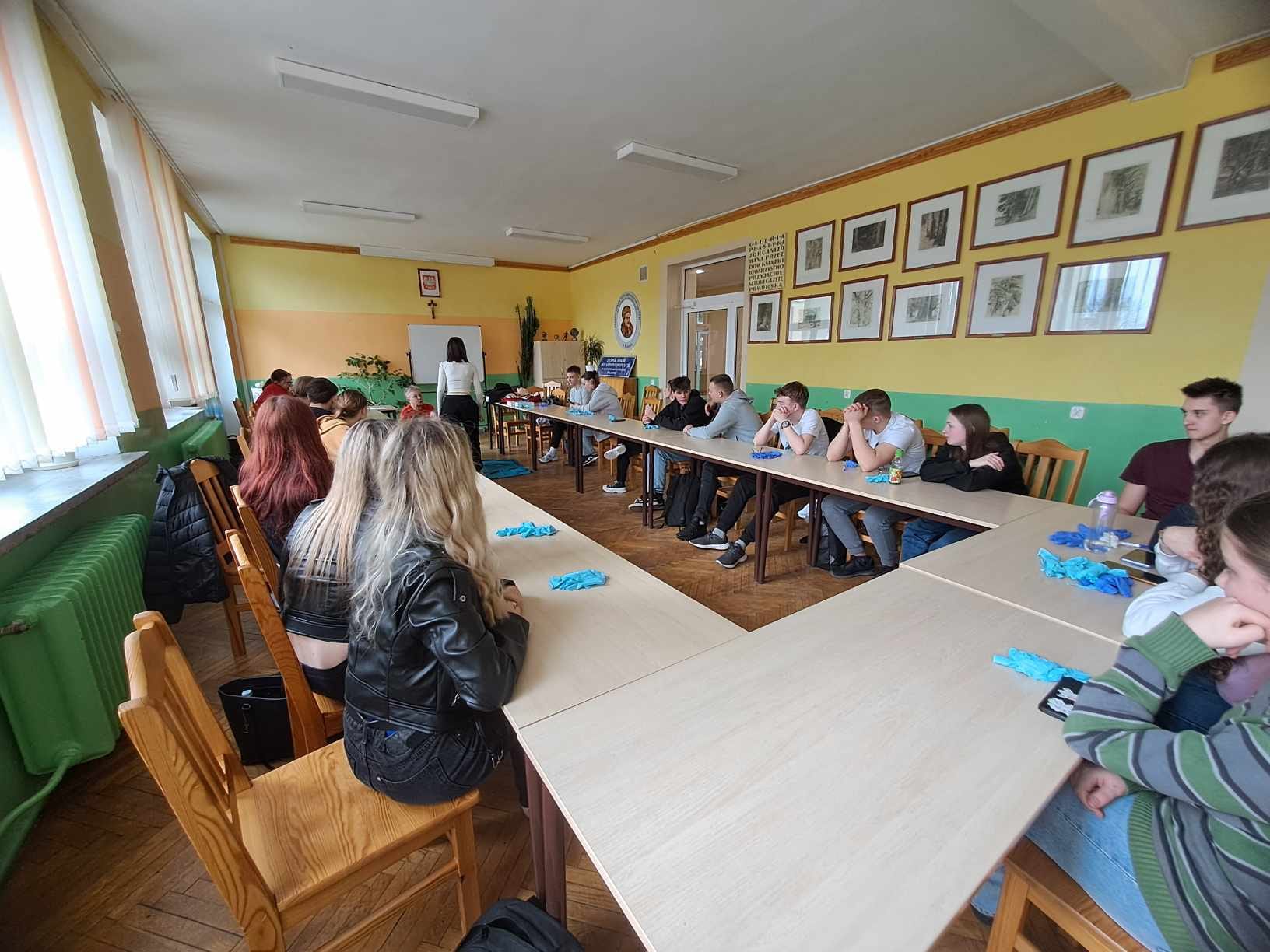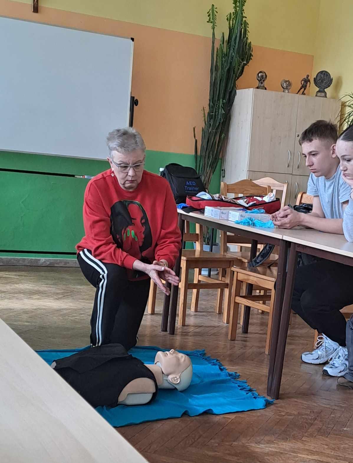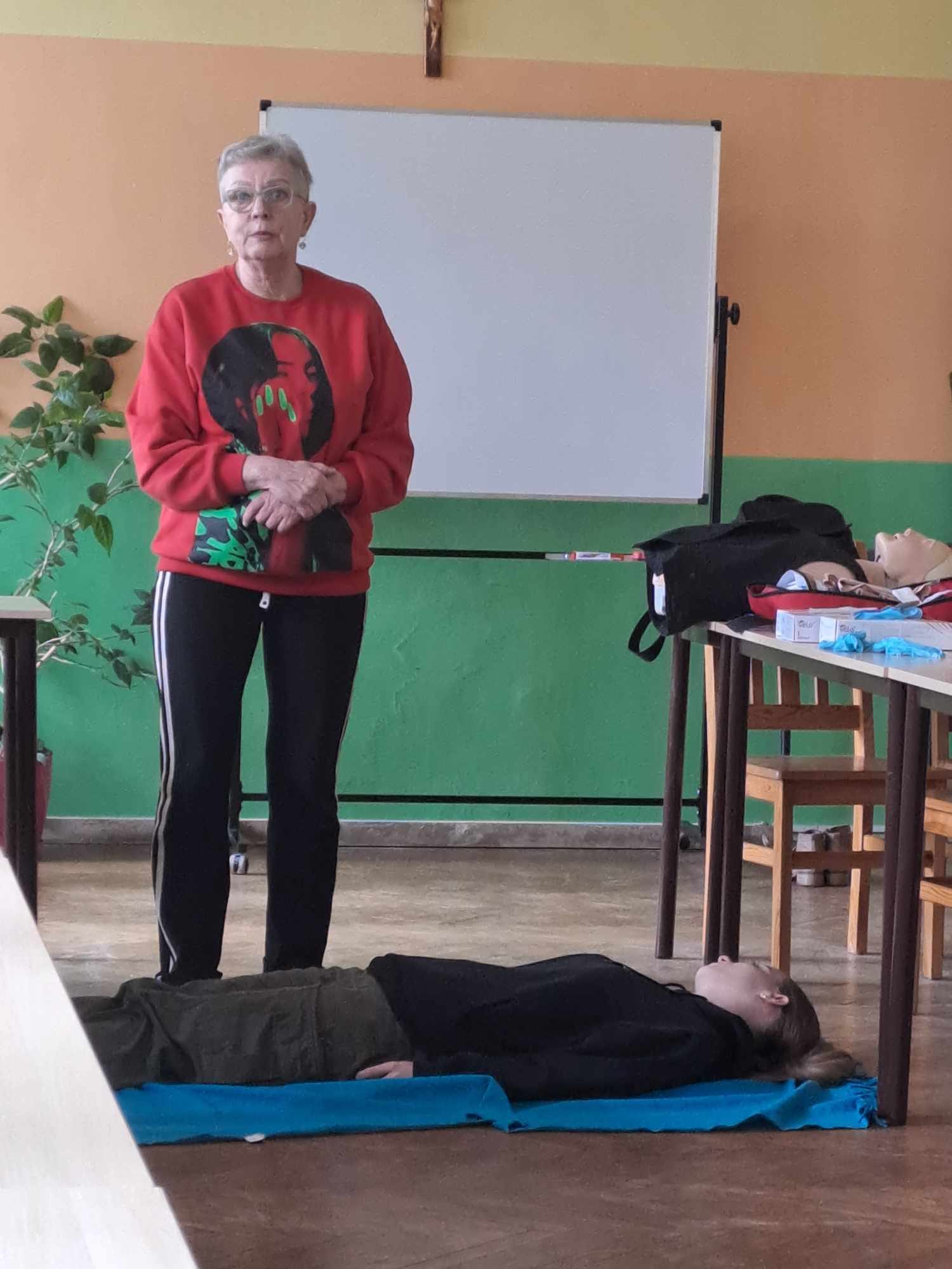W ubiegłym tygodniu odbyło się szkolenie z pierwszej pomocy przedmedycznej dla uczniów naszej szkoły, które przeprowadziła pani Ewa Szymańska z ZR PCK w Grudziądzu. Podczas spotkania zostały przypomniane zasady udzielania pierwszej pomocy osobom, które np. straciły przytomność, poparzyły się, zakrztusiły się lub uległy innym wypadkom. Uczestnicy mogli przećwiczyć m.in. resuscytację krążeniowo- oddechową czy opatrywanie ran i krwotoków. W szkoleniu uczestniczyło 23 uczniów.