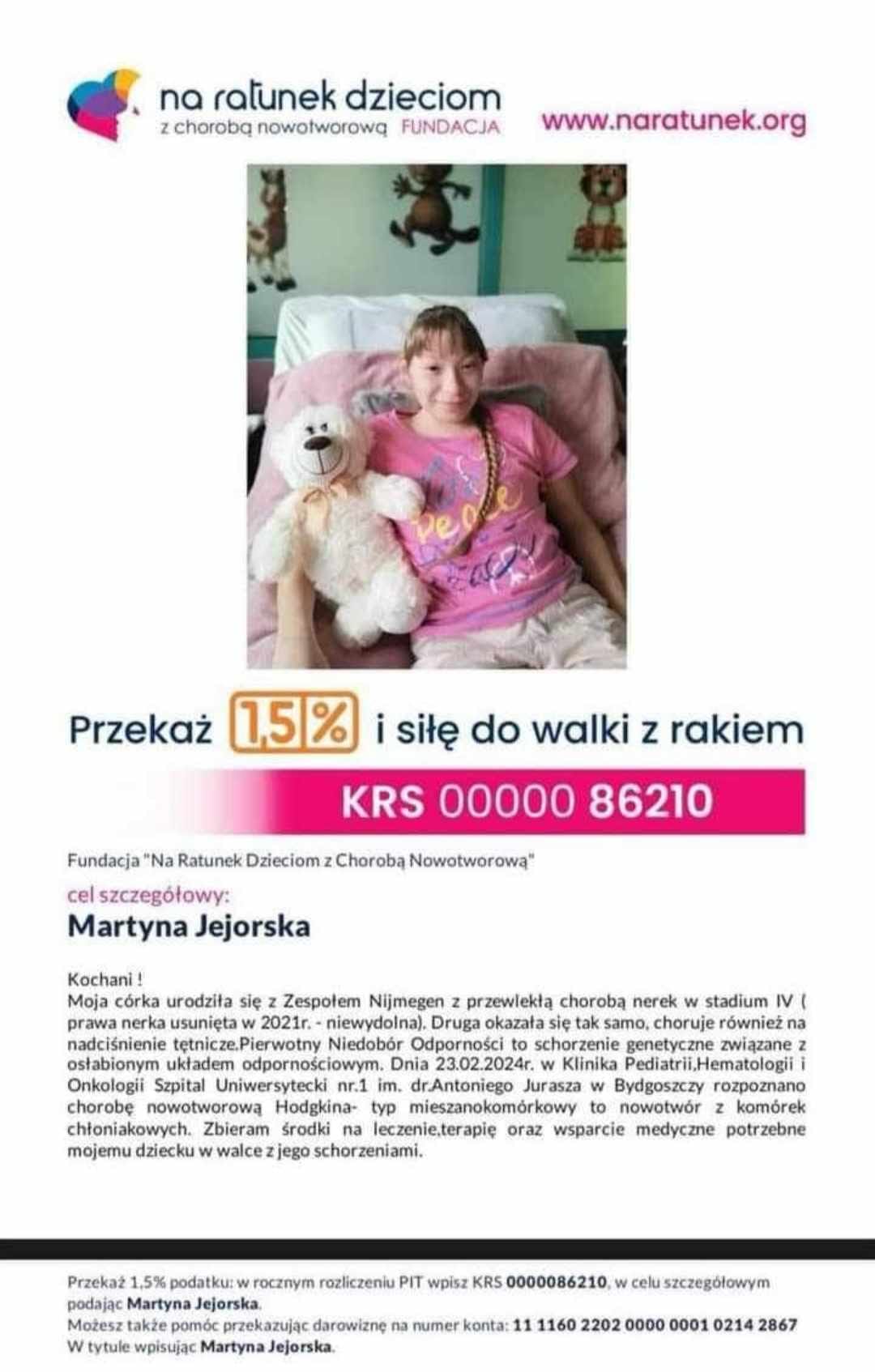 Martyna Jejorska potrzebuje pomocy! Nasza szkoła postanowiła zaangażować się w zbiórkę na leczenie Martyny – siostry jednej z Naszych uczennic.