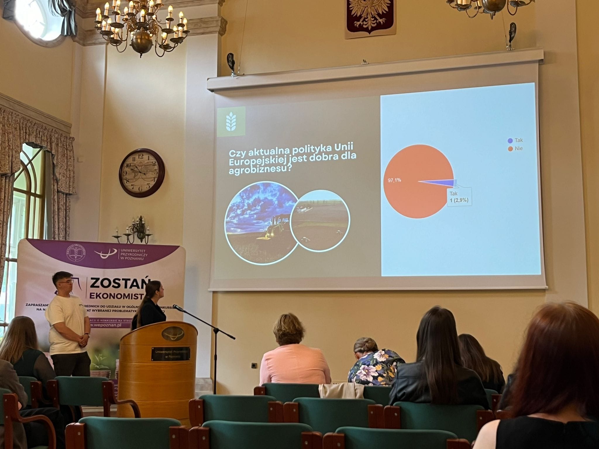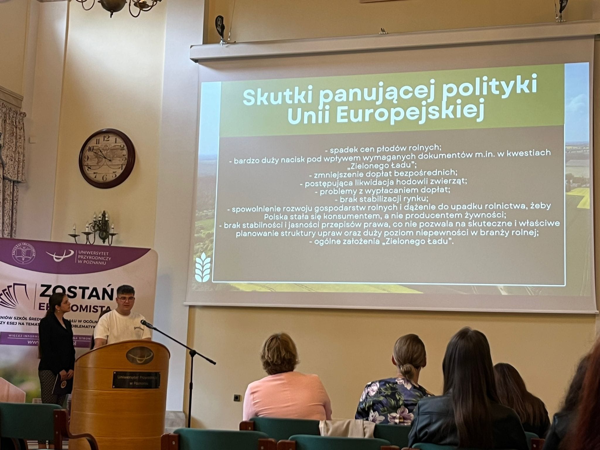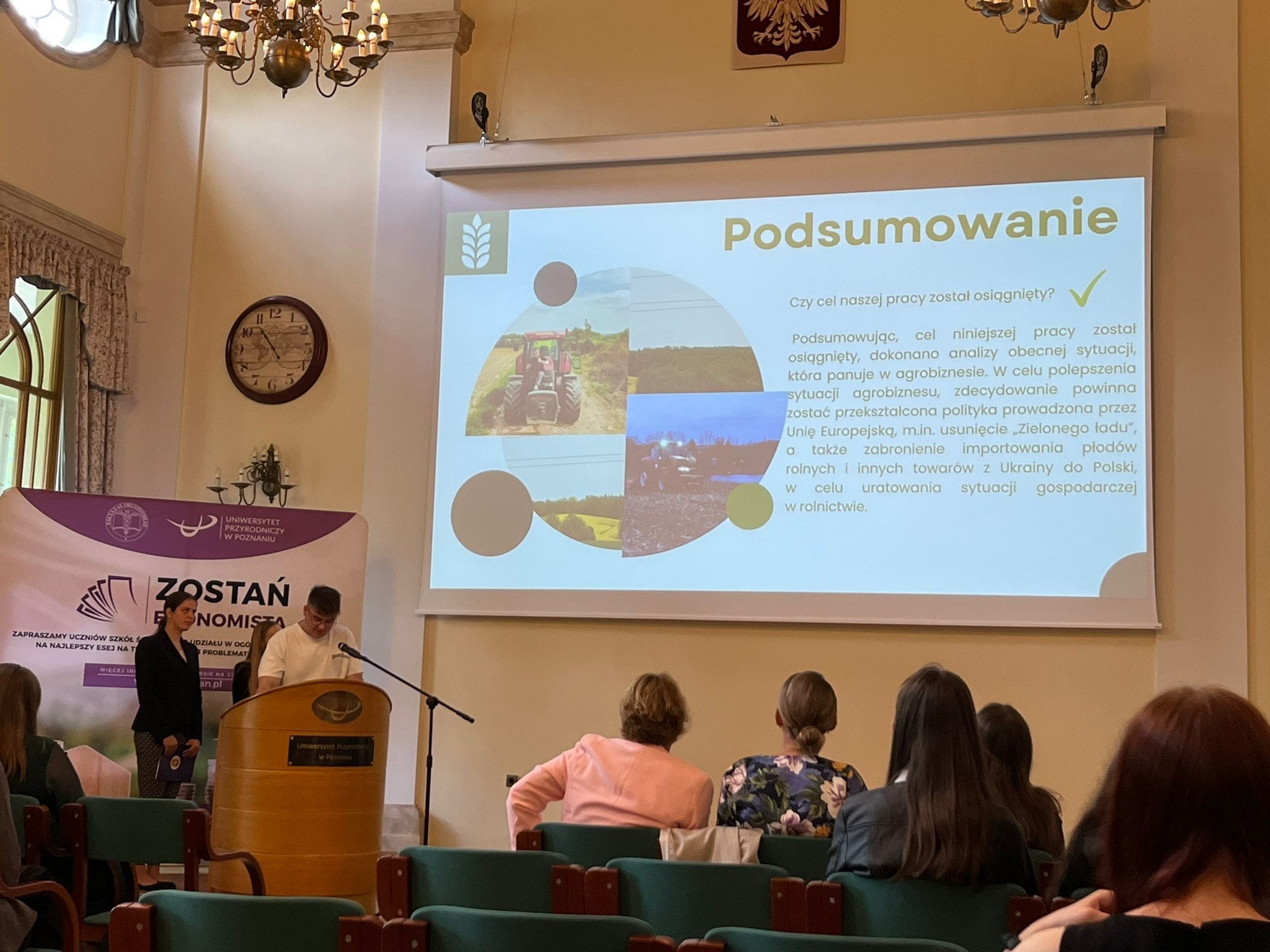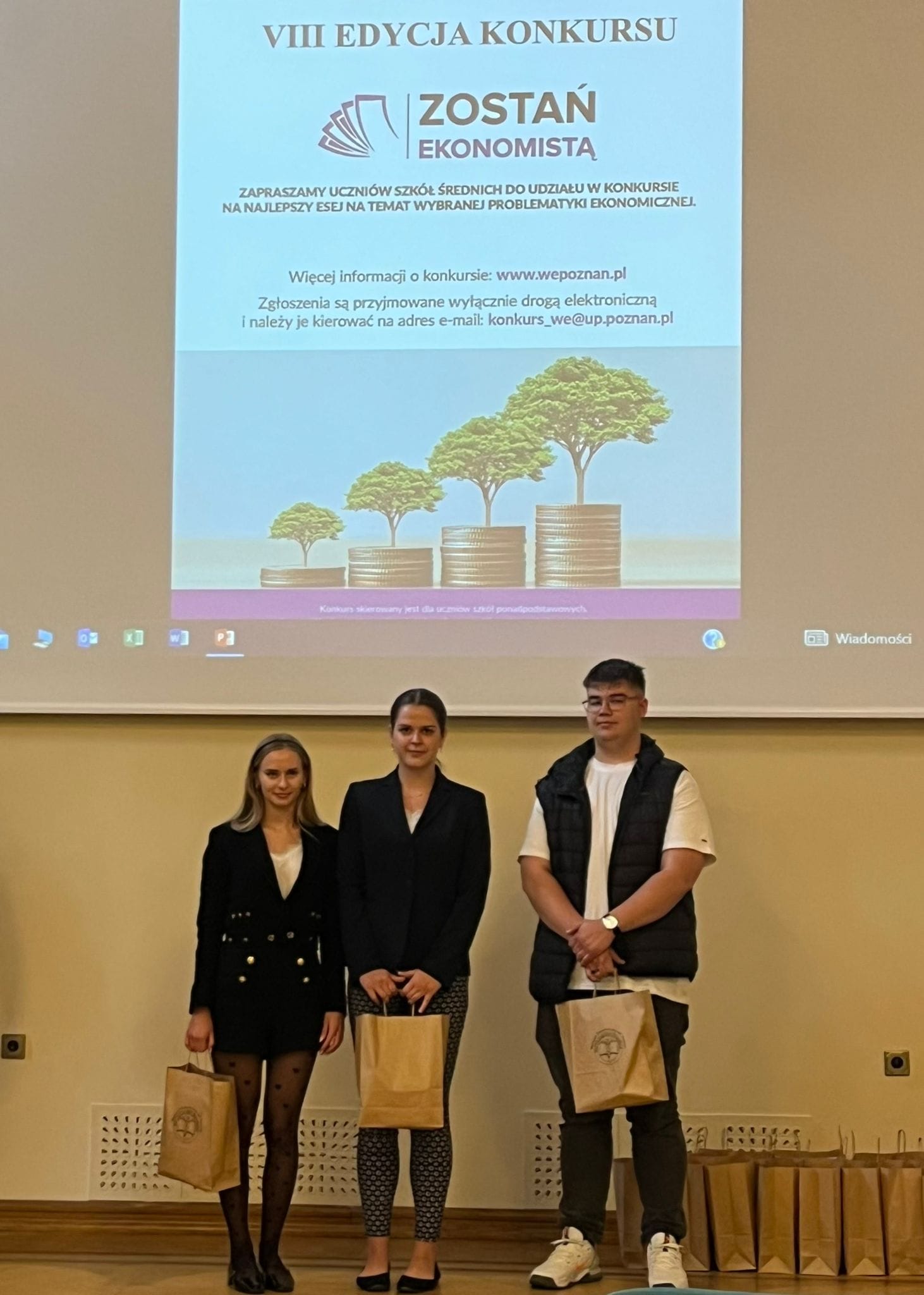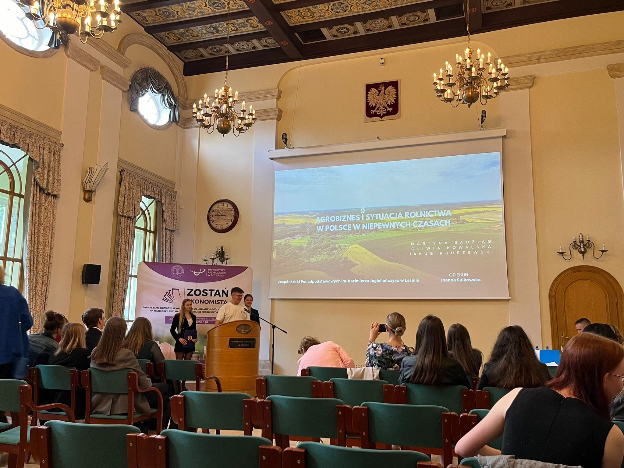 24 maja 2024 r. odbył się II etap VIII edycji ogólnopolskiego konkursu „Zostań Ekonomistą” zorganizowanego przez Wydział Ekonomiczny Uniwersytetu Przyrodniczego w Poznaniu dla uczniów szkół ponadpodstawowych. Spośród 65 zespołów, które brały udział w konkursie do II etapu przeszło 16 z nich – w tym jeden z naszej szkoły w składzie: Martyna Badziąg, Oliwia Kowalska i Jakub Kruszewski, pod opieką pani Joanny Sulkowskiej. Pierwszy etap konkursu polegał na napisaniu eseju, a drugi na zaprezentowaniu swoich badań w prezentacji oraz udział w dyskusji na temat pracy. Nasza drużyna zaprezentowała pracę na temat „Agrobiznes i sytuacja rolnictwa w Polsce w niepewnych czasach” i wywalczyła 3 miejsce, otrzymując przy tym zaświadczenie uprawniające do przyjęcia na studia I stopnia bez konieczności udziału w postępowaniu kwalifikacyjnym podczas rekrutacji.