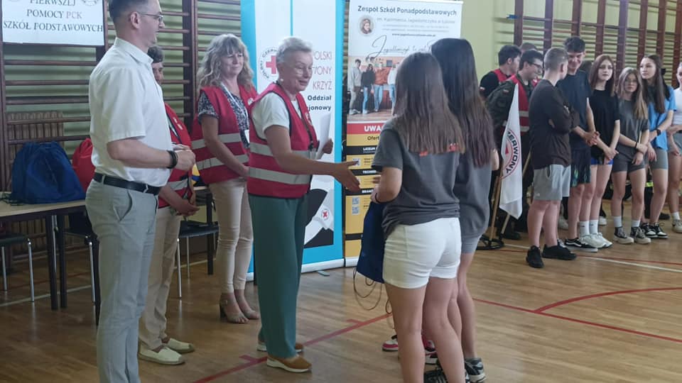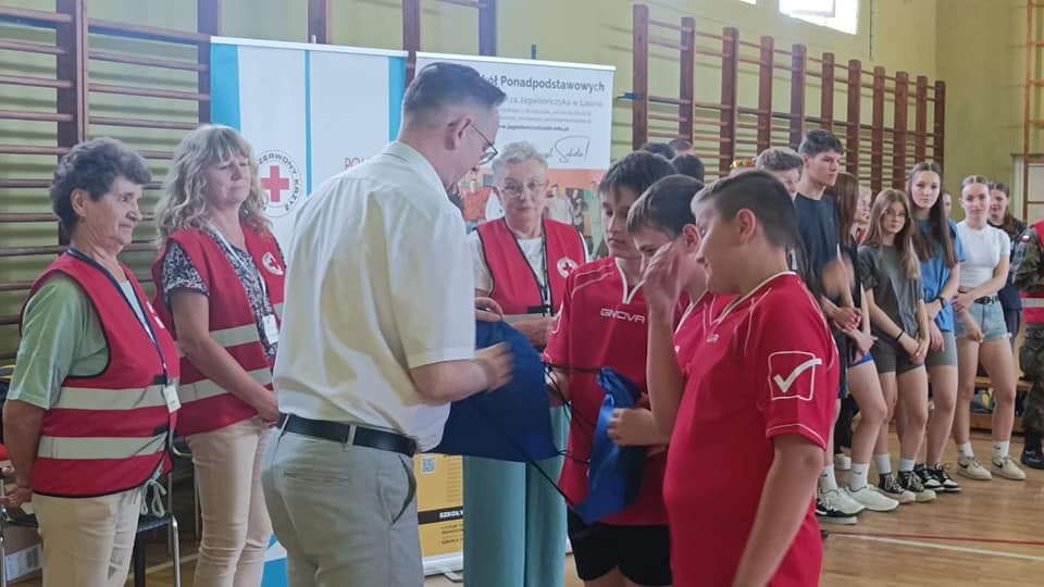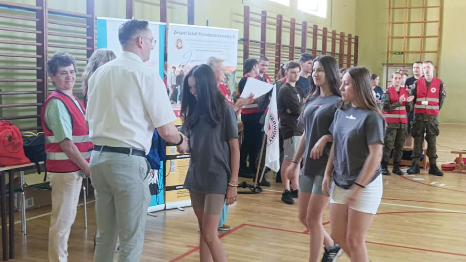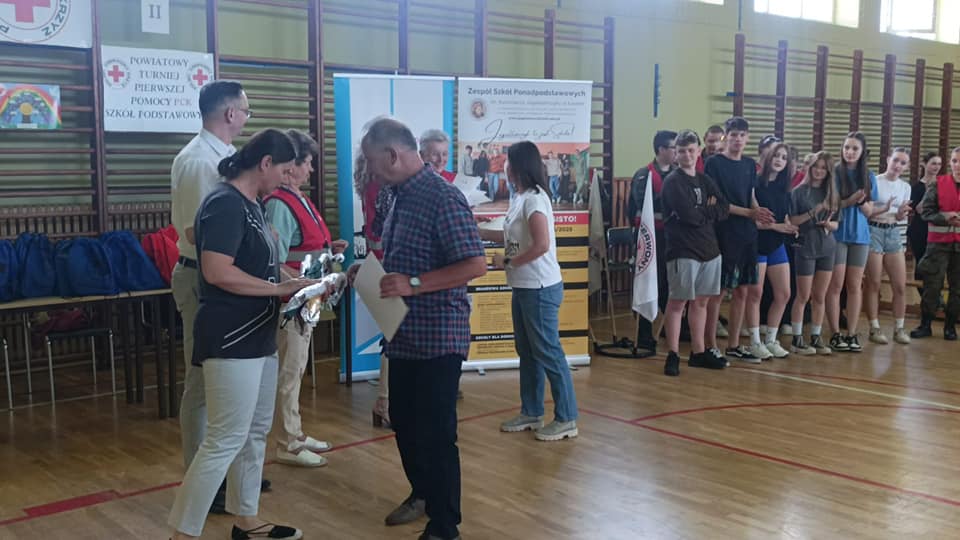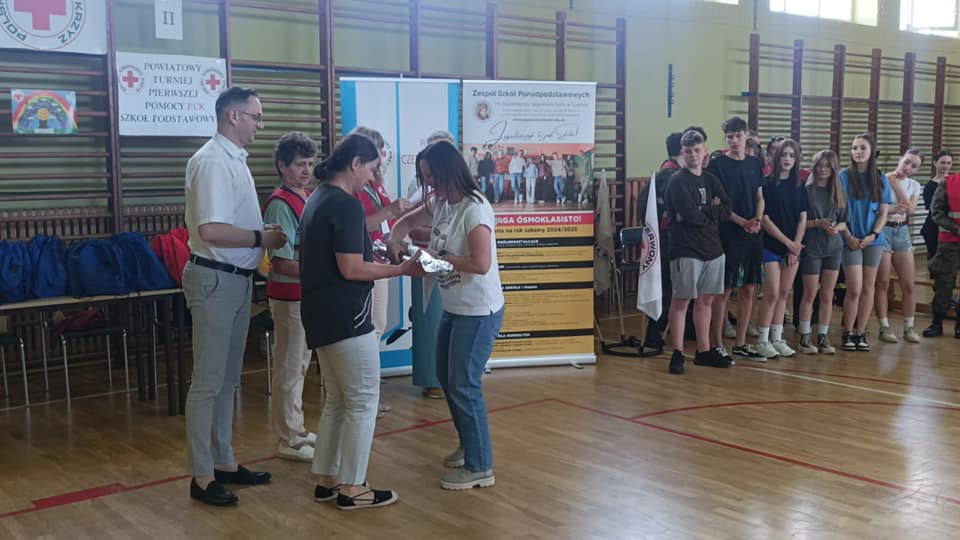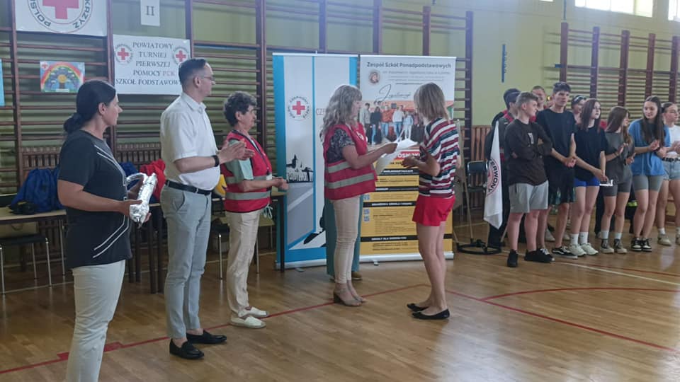 Wczoraj w naszej szkole odbył się „II Powiatowy Turniej Pierwszej Pomocy PCK Szkół Podstawowych” pod patronatem Starosty Powiatu Grudziądzkiego. W zmaganiach udział wzięło 6 drużyn. Wszyscy musieli wykazać się umiejętnościami udzielania pierwszej pomocy w różnych sytuacjach np. przy omdleniach, poparzeniach chemicznych, złamaniach kończyn, ranach głowy czy problemach po nadużyciu alkoholu lub innych używek, a także wykonać resuscytację krążeniowo- oddechową. Zawodnicy rozwiązywali również test wiedzy z pierwszej pomocy oraz mieli stację relaks. Po podsumowaniu, klasyfikacja końcowa turnieju przedstawia się następująco:
