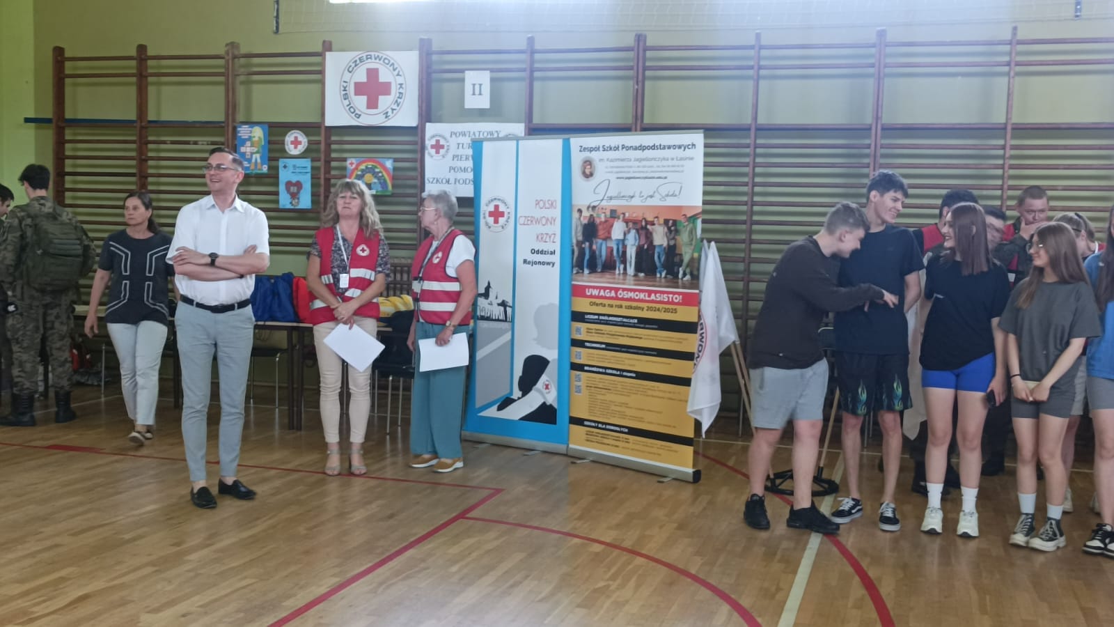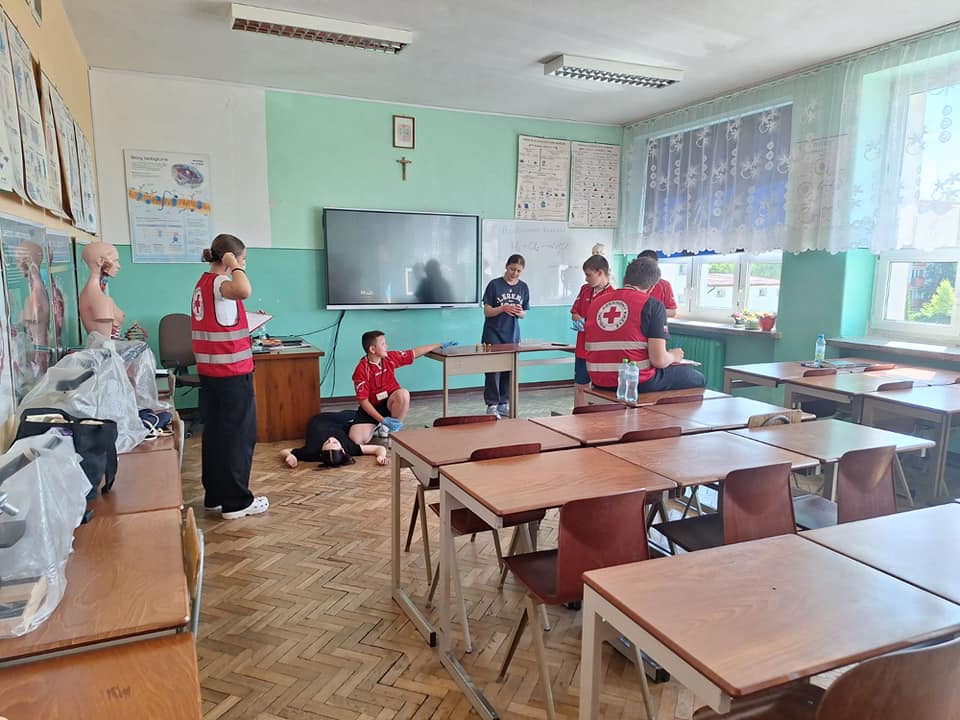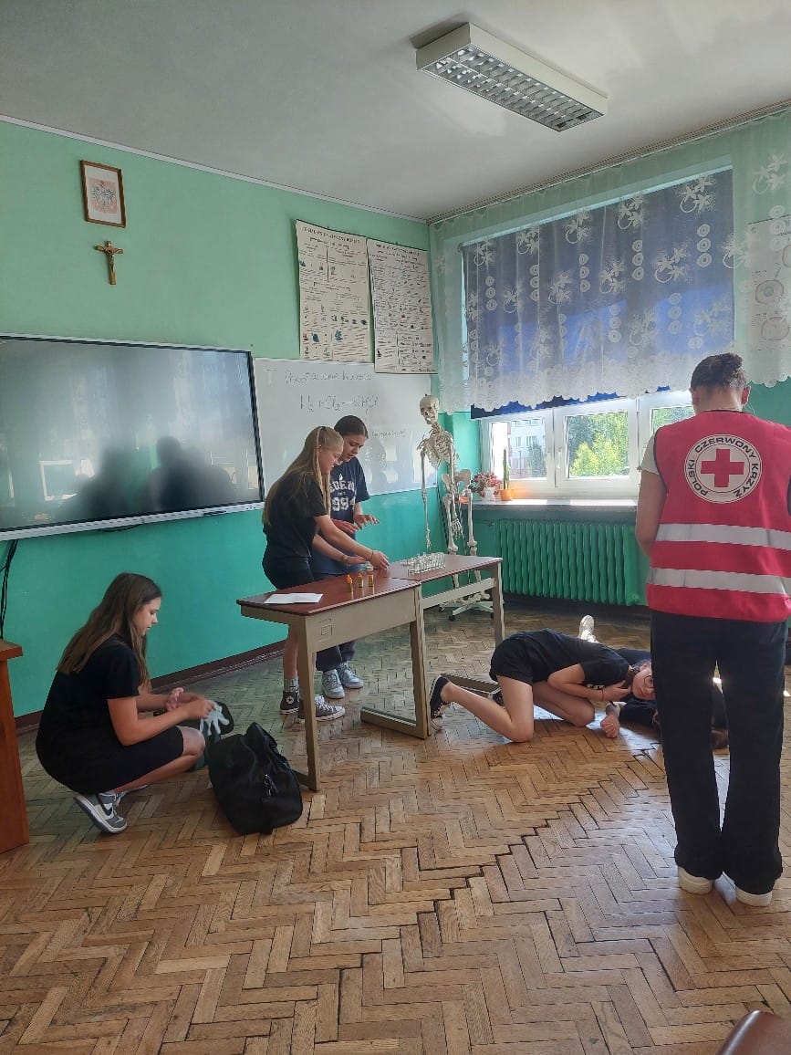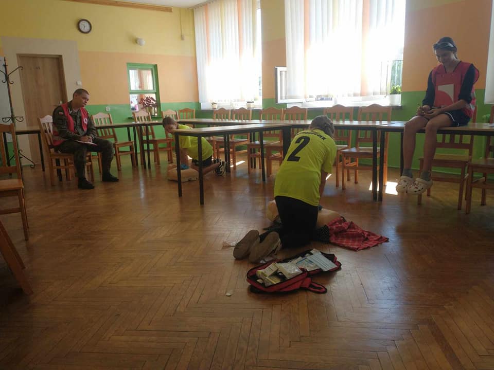 Wczoraj w naszej szkole odbył się „II Powiatowy Turniej Pierwszej Pomocy PCK Szkół Podstawowych” pod patronatem Starosty Powiatu Grudziądzkiego. W zmaganiach udział wzięło 6 drużyn. Wszyscy musieli wykazać się umiejętnościami udzielania pierwszej pomocy w różnych sytuacjach np. przy omdleniach, poparzeniach chemicznych, złamaniach kończyn, ranach głowy czy problemach po nadużyciu alkoholu lub innych używek, a także wykonać resuscytację krążeniowo- oddechową. Zawodnicy rozwiązywali również test wiedzy z pierwszej pomocy oraz mieli stację relaks. Po podsumowaniu, klasyfikacja końcowa turnieju przedstawia się następująco: