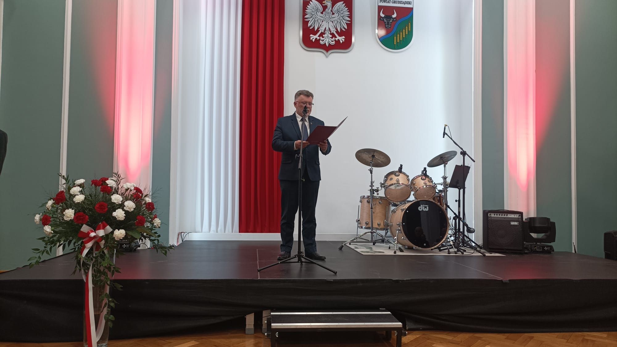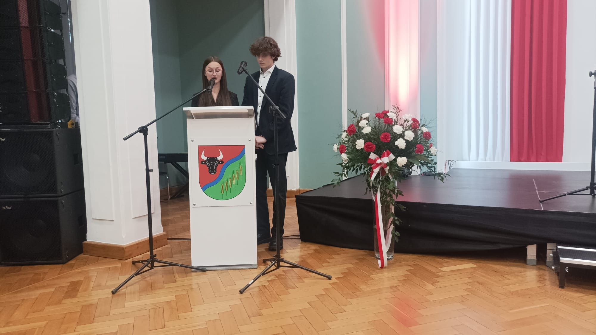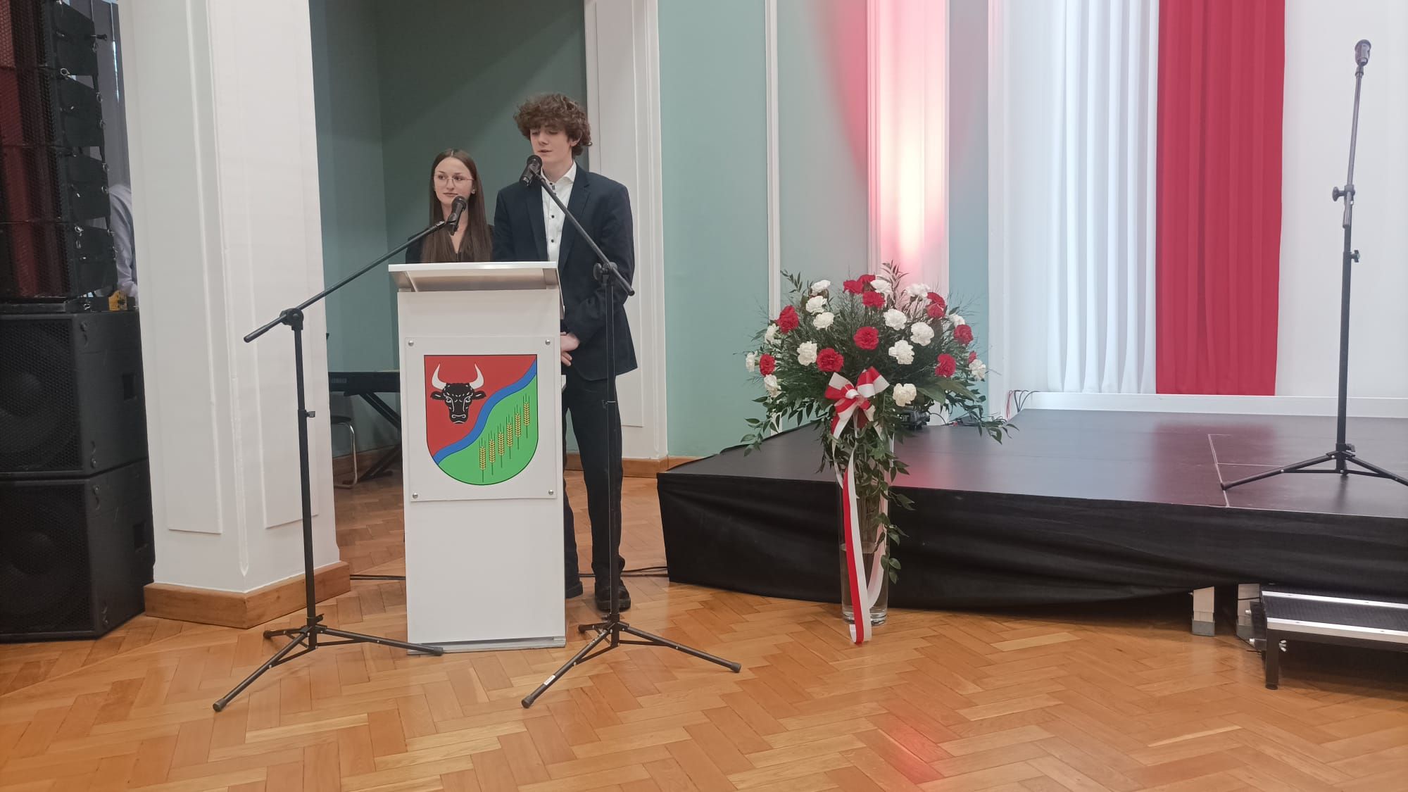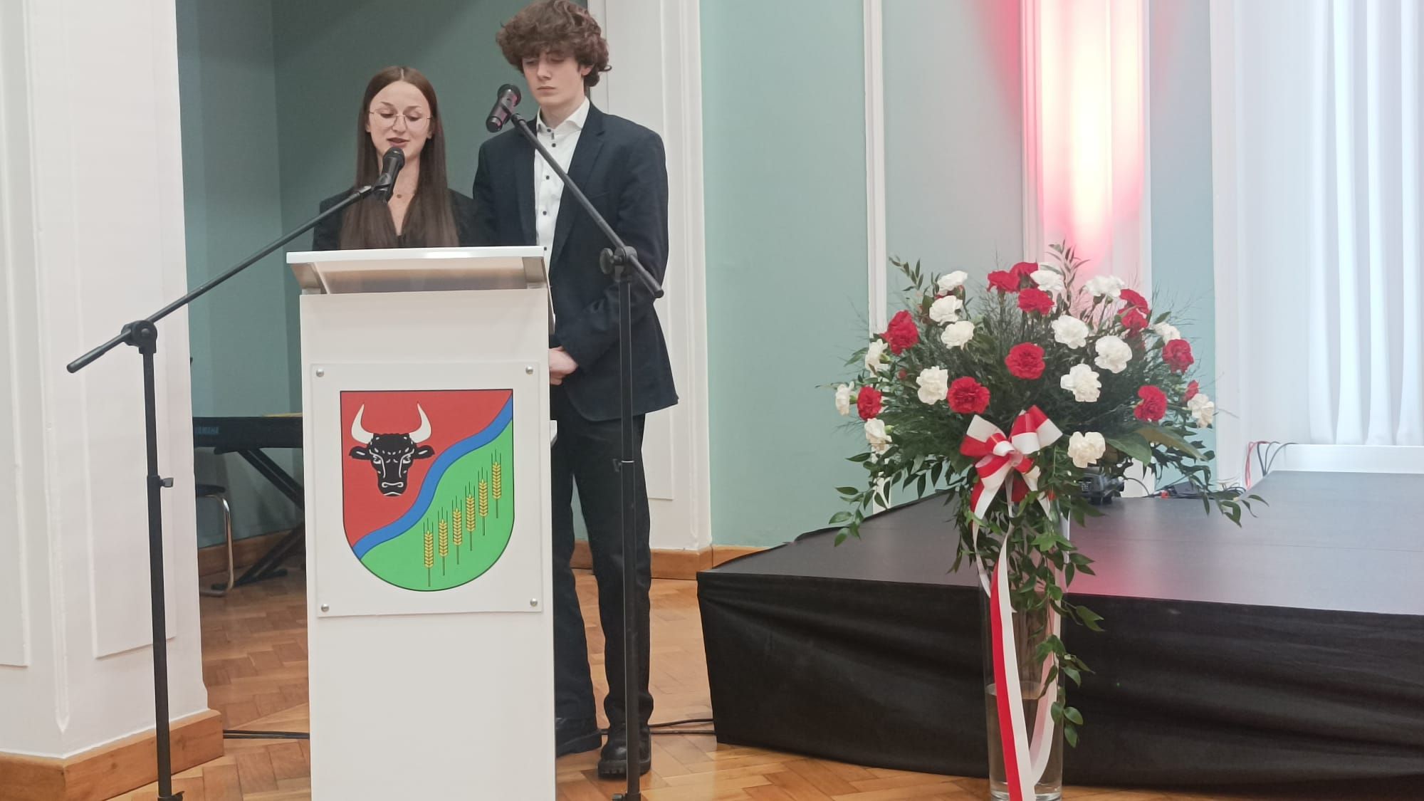 Wiktoria i Leszek jako prowadzący uroczystość „Zasłużony dla powiatu grudziądzkiego”, Oliwier uwiecznił jej część artystyczną. Uroczysta gala wręczenia medali odbyła się dziś w Starostwie Powiatowym w Grudziądzu.