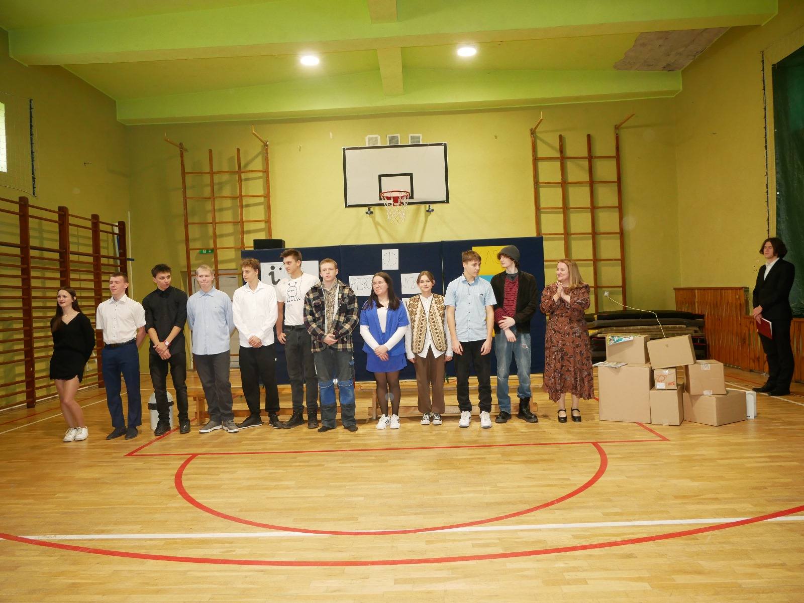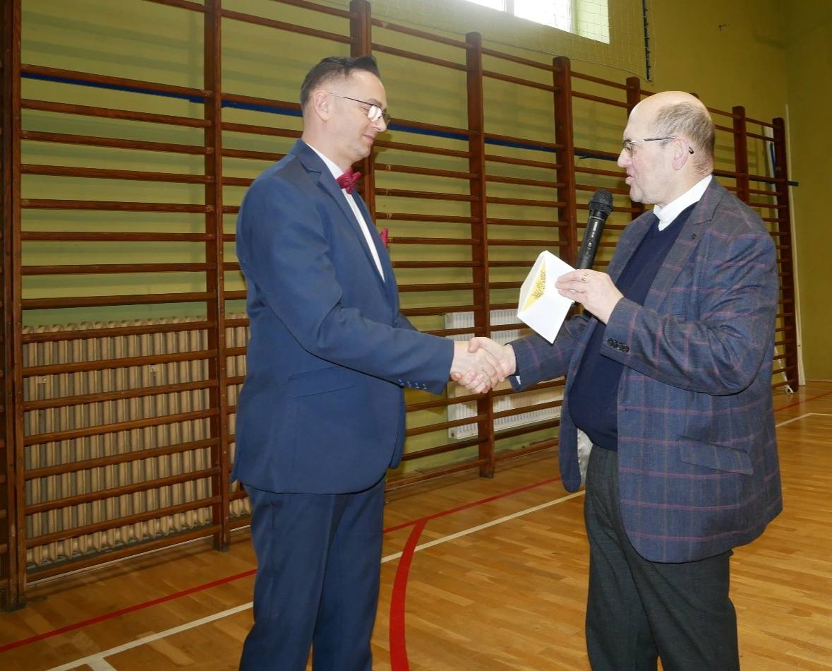 Obecni byli z nami p. Adam Olejnik, starosta powiatu grudziądzkiego, p. Krzysztof Klonowski przewodniczący Rady Powiatu Grudziądzkiego, p. Marek Czarnuch i p. Mirosław Guzowski – radni powiatu grudziądzkiego oraz ks.kan. Grzegorz Grabowski – proboszcz parafii p.w. św. Katarzyny w Łasinie. Pan dyrektor wraz z naszymi gośćmi złożył wszystkim życzenia świąteczne. Wcześniej w klasach odbyły się spotkania wigilijne.