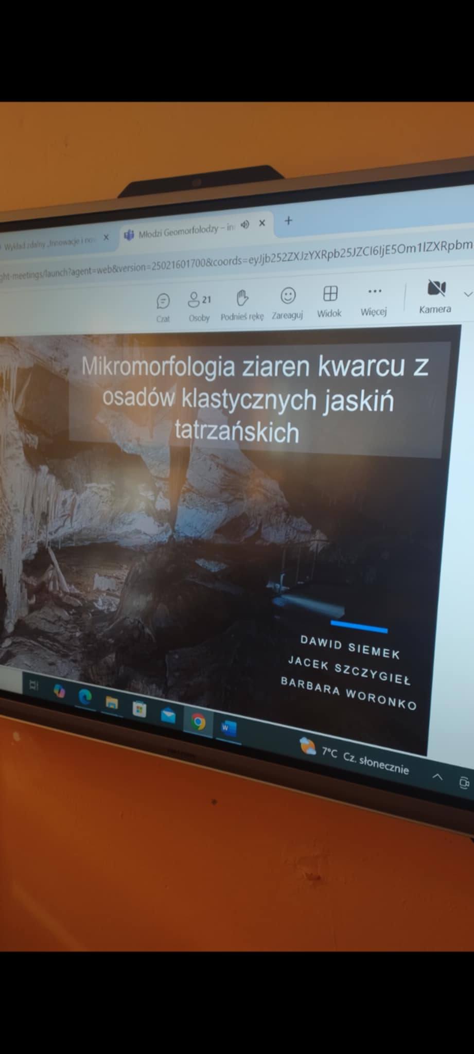Z okazji „Tygodnia Geomorfologii 2025” uczniowie klas drugich i trzecich Liceum Ogólnokształcącego w ramach zakresu rozszerzonego z geografii mieli okazję uczestniczyć w wykładzie online pt. „Innowacje i nowe perspektywy w geomorfologii”. Młodzi Geomorfolodzy przedstawili nam ciekawe tematy swoich badań – „Mikromorfologia ziaren kwarcu z osadów klasycznych jaskiń tatrzańskich” oraz „O całorocznym występowaniu lodu w jaskini Wielkiej Śnieżnej”. Czekamy na kolejne profesjonalne i ciekawe wystąpienia prelegentów.
