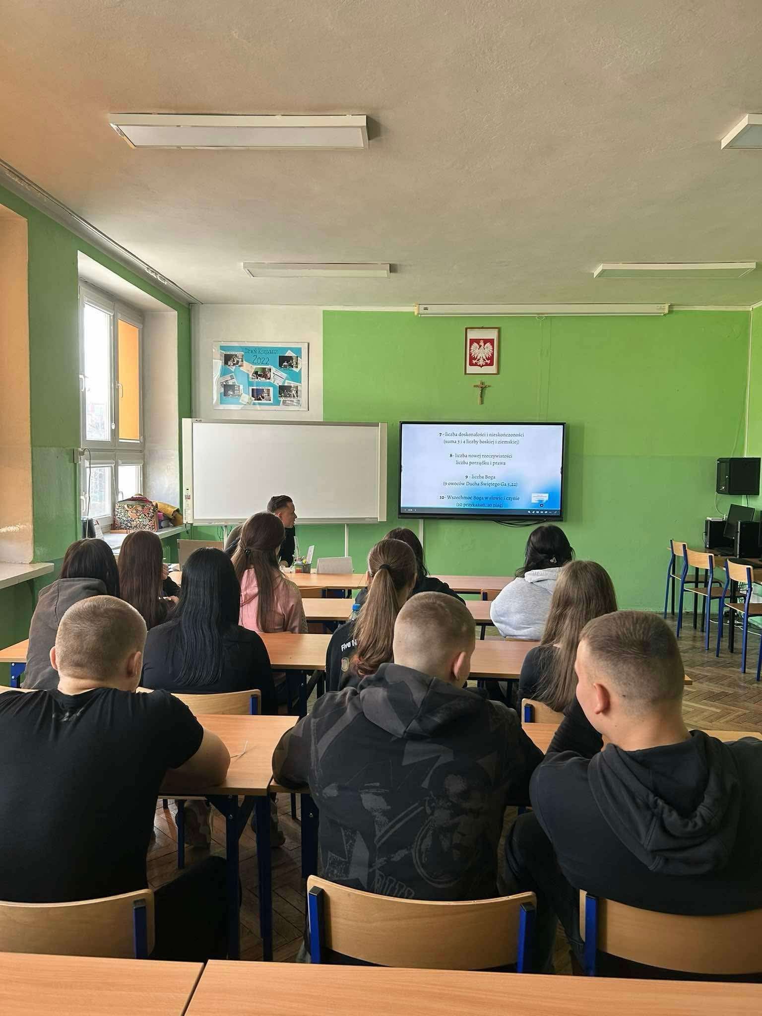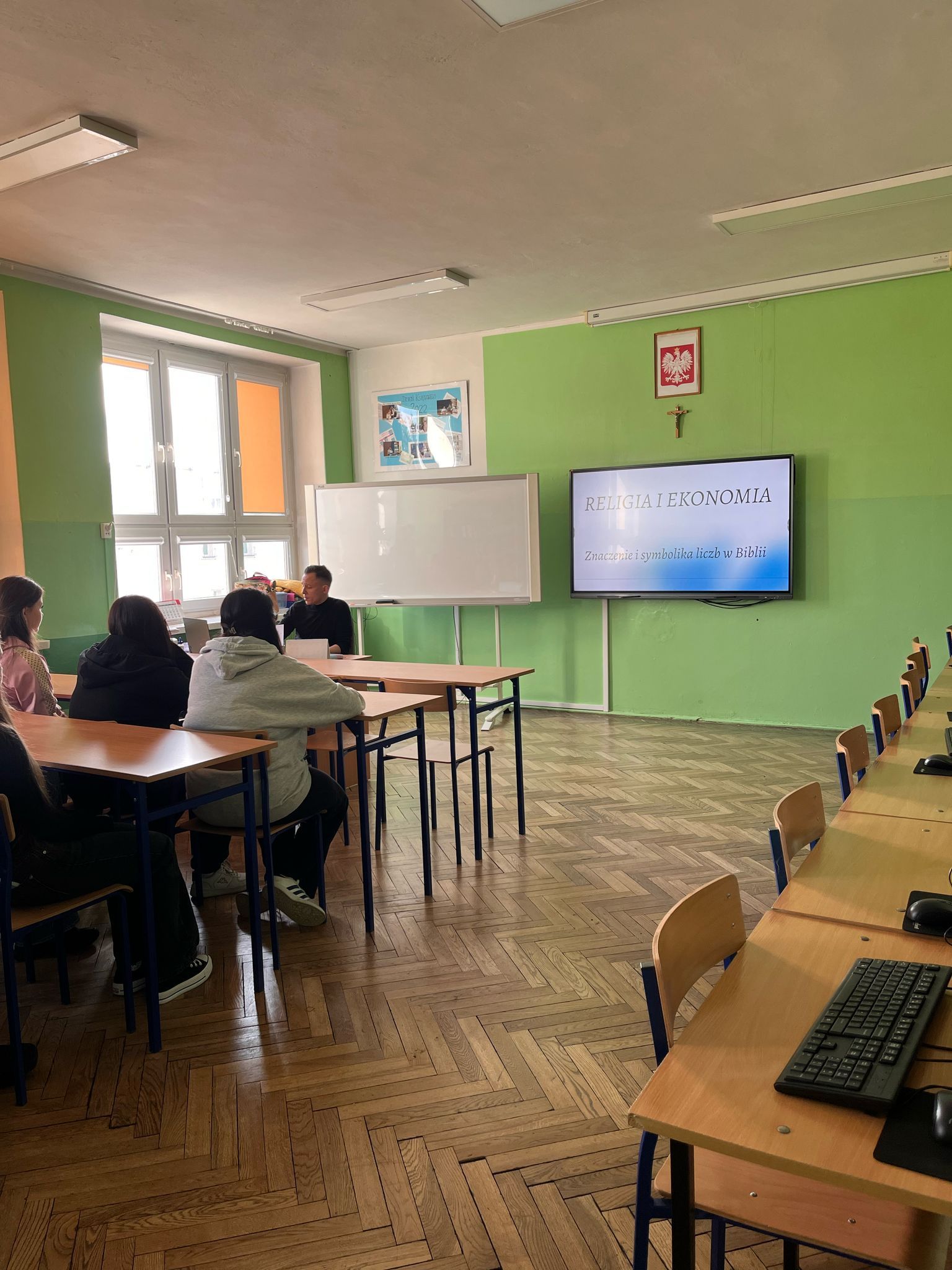 Realizujemy kolejne zadania V edycji Złotych Szkół NBP. Tym razem połączyliśmy ekonomię i religię. Ksiądz Arkadiusz przeprowadził lekcję na temat: Znaczenie i symbolika liczb w Biblii. Lekcja pozwoliła odkryć znaczenie liczb zarówno w Starym jak i w Nowym Testamencie. Uczniowie dowiedzieli się, że liczby nie pełnią w Biblii funkcji magicznej ale są odnośnikami do konkretnych rzeczywistości Boga lub człowieka. Poznali w jaki sposób liczby potrafią wpływać na interpretację niektórych historii z Ewangelii oraz jak odczytywali je starożytni pisarze wczesnochrześcijańscy.