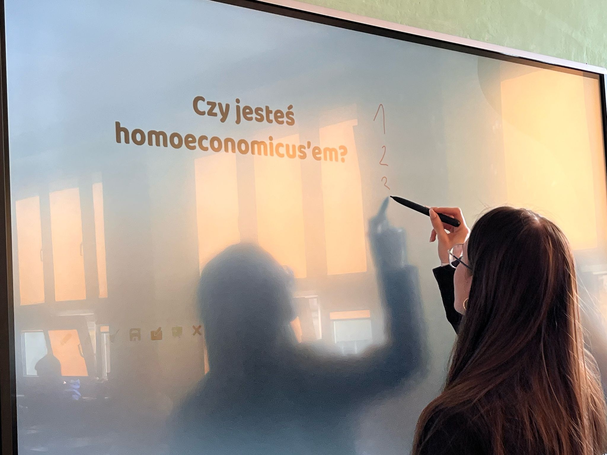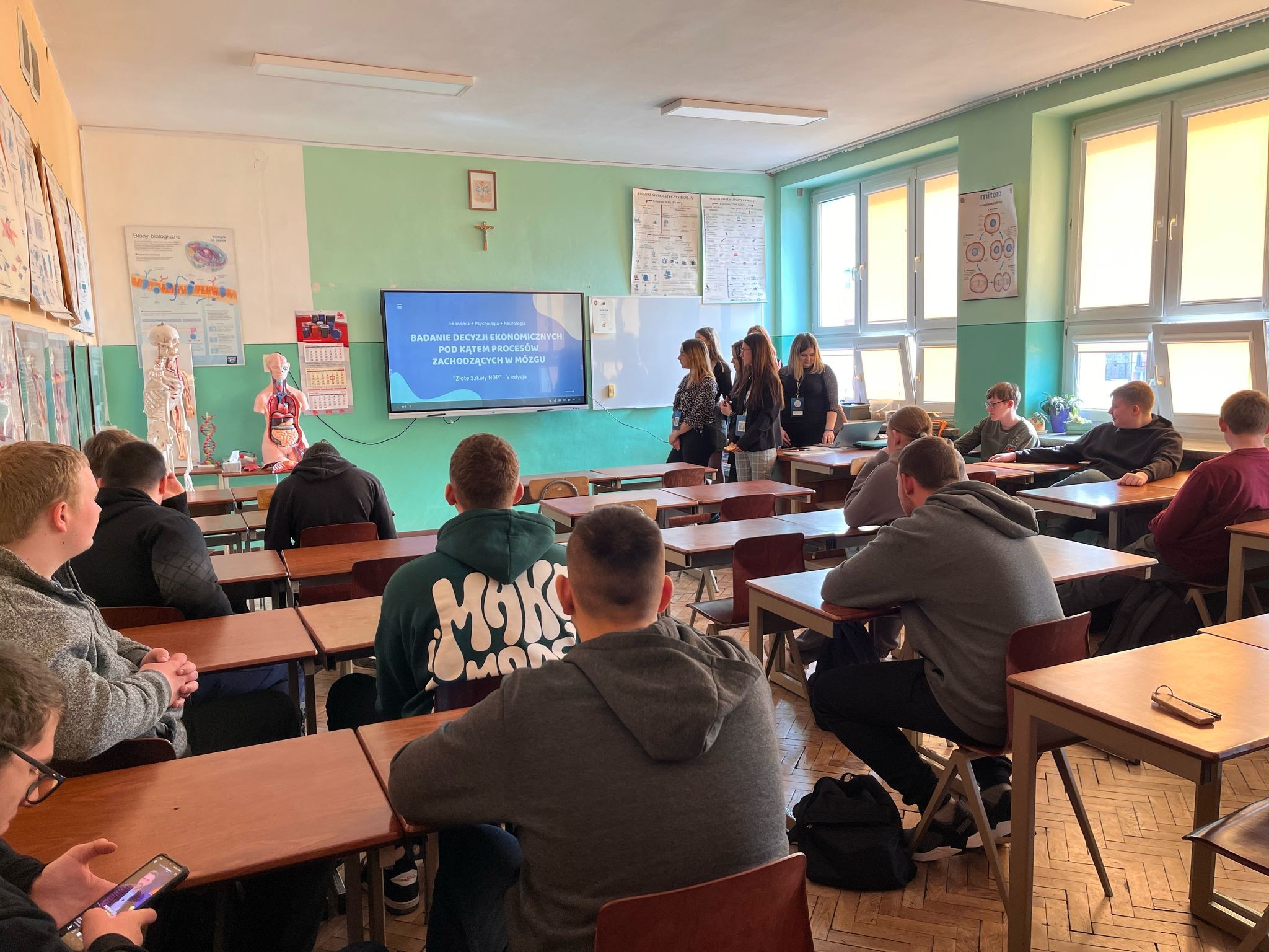 Na zajęciach poznaliśmy budowę mózgowia, ośrodki odpowiadające za różne funkcje życiowe ze szczególnym uwzględnieniem tzw. układu nagrody. Uczniowie zdobyli wiedzę na temat metod obrazowania pracy mózgu: EEG, PET i fMRI i ich wykorzystania w ekonomii, a dokładniej w neuroekonomii. Wiedząc jakie ośrodki odpowiadają za uczucie przyjemności można „sterować” mózgiem, abyśmy byli skłonni do podejmowania większego ryzyka finansowego – w końcu pieniądze, a dokładniej ich posiadanie daje poczucie przyjemności. Na koniec uczestnicy brali udział w eksperymencie ekonomicznym „Grze Ultimatum”. Wyniki eksperymentu ujawniły kto jest Homo economicusem.