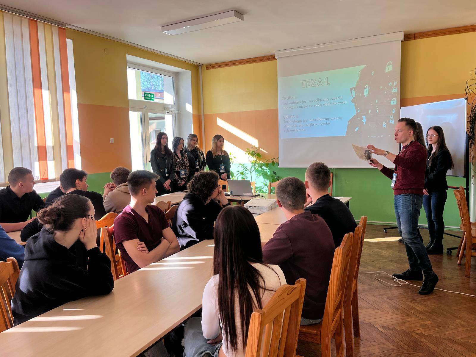 W ubiegłą środę odbyła się DEBATA z uczniami „Jagiellończyka” w ramach naszego projektu. Uczniowie biorący w niej udział zostali podzieleni na dwie grupy. Każda grupa otrzymała swoją tezę, którą musiała poprzeć argumentami oraz w ten sam sposób obalić tezę przeciwników. Walka była bardzo zacięta. W podziękowaniu za zaangażowanie nasi koledzy otrzymali od nas drobne nagrody.