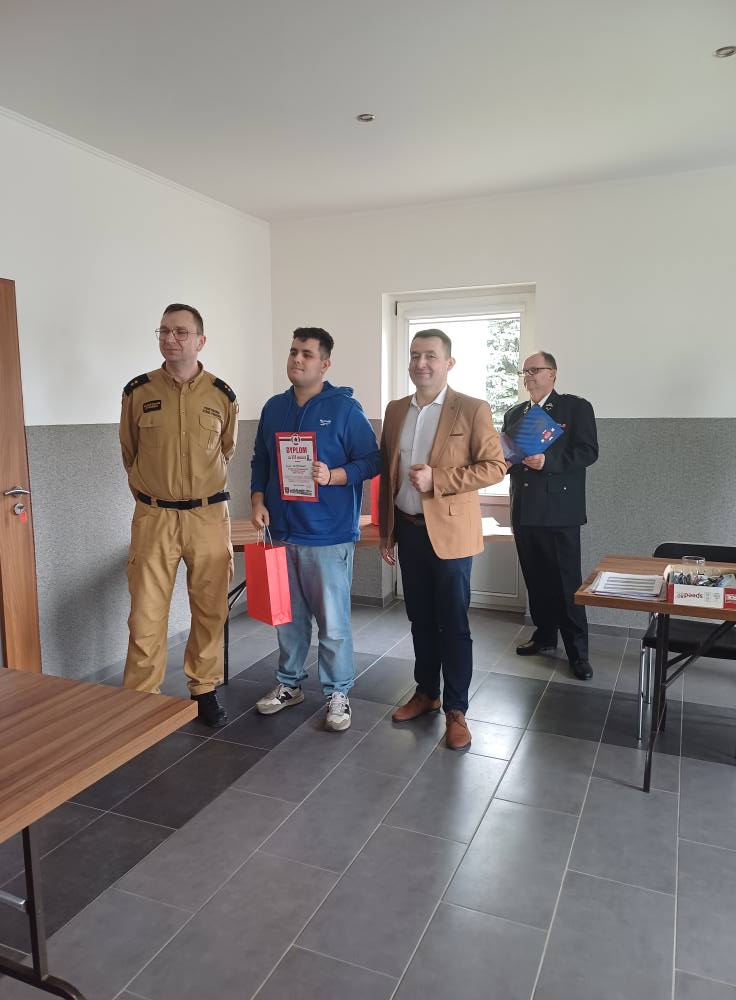 24.03.2025 r. w Remizie Straży Pożarnej w Łasinie odbył się etap gminny Ogólnopolskiego Konkursu – „Młodzież zapobiega pożarom”. W zawodach wystartowali uczniowie naszej szkoły: Fabian Radziszewski, Kamil Czajkowski, Kornel Bukowski, Adrian Janc i Arkadiusz Ciernicki.