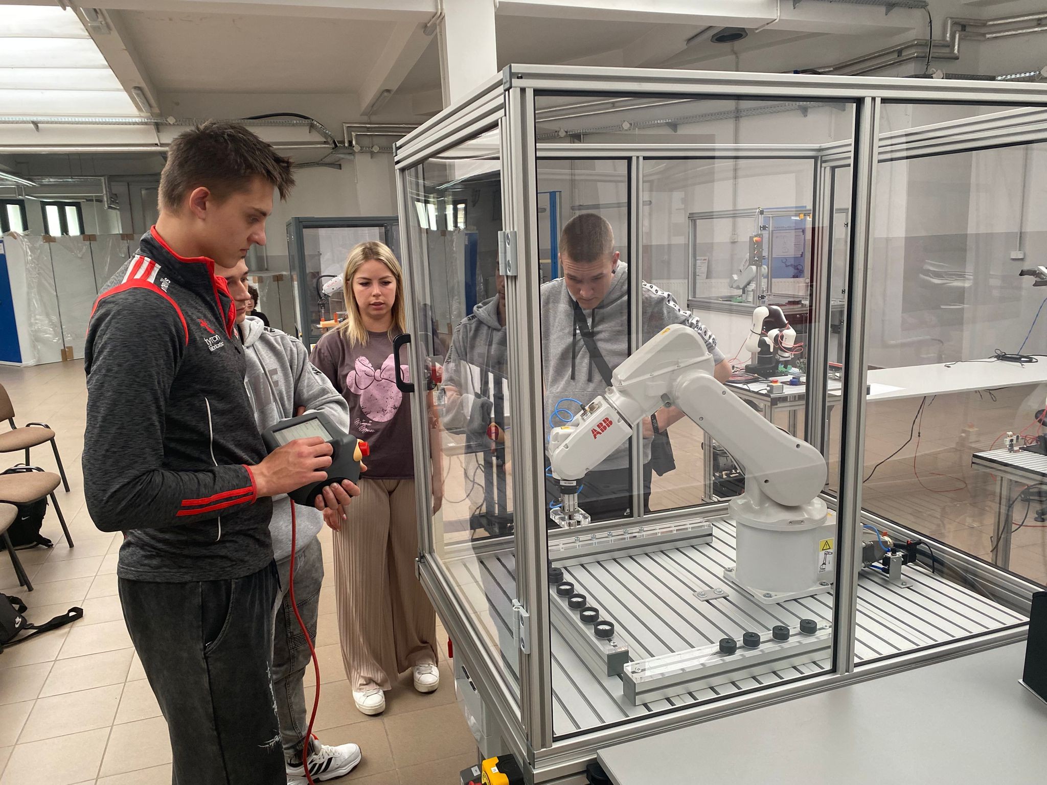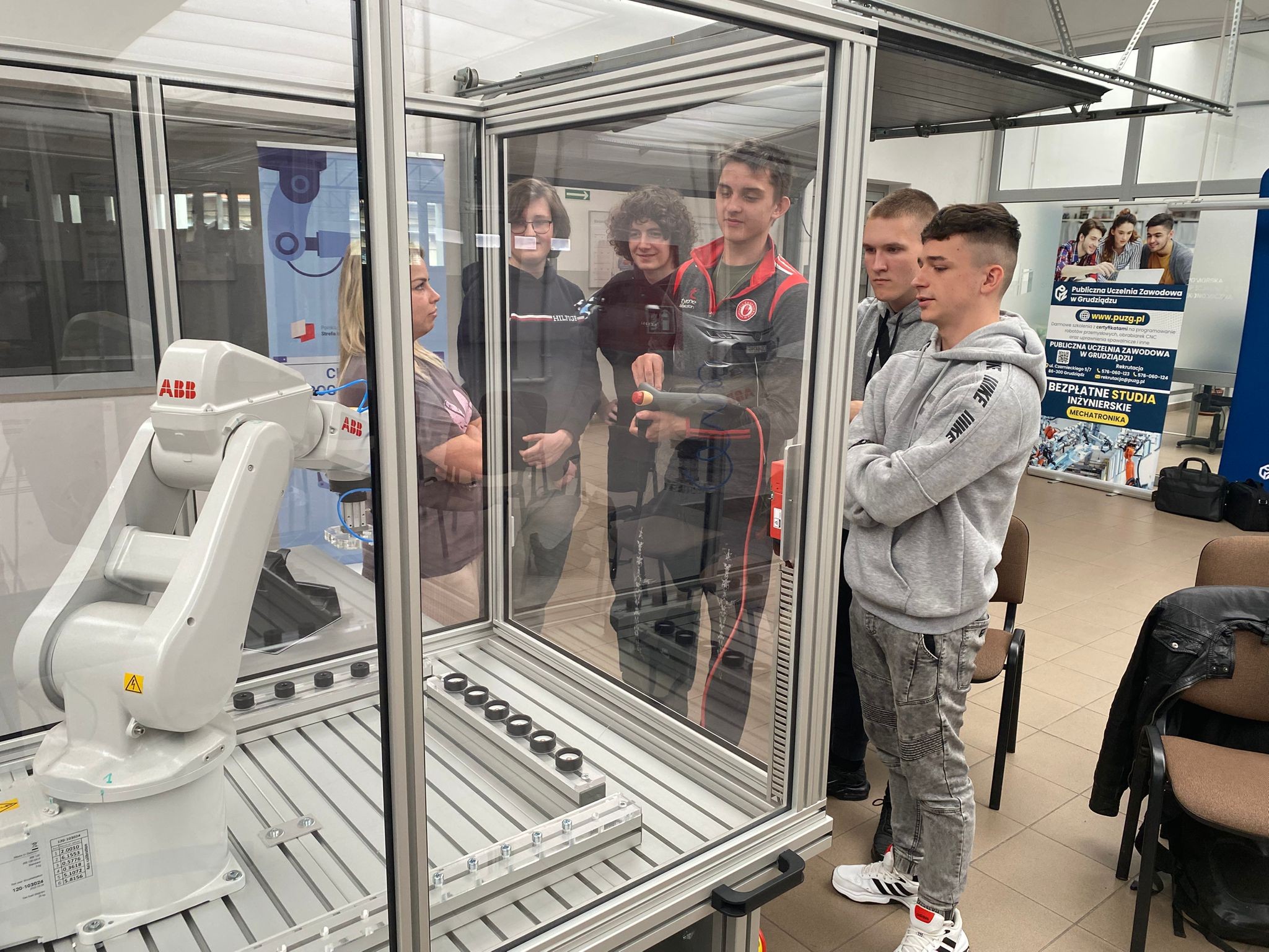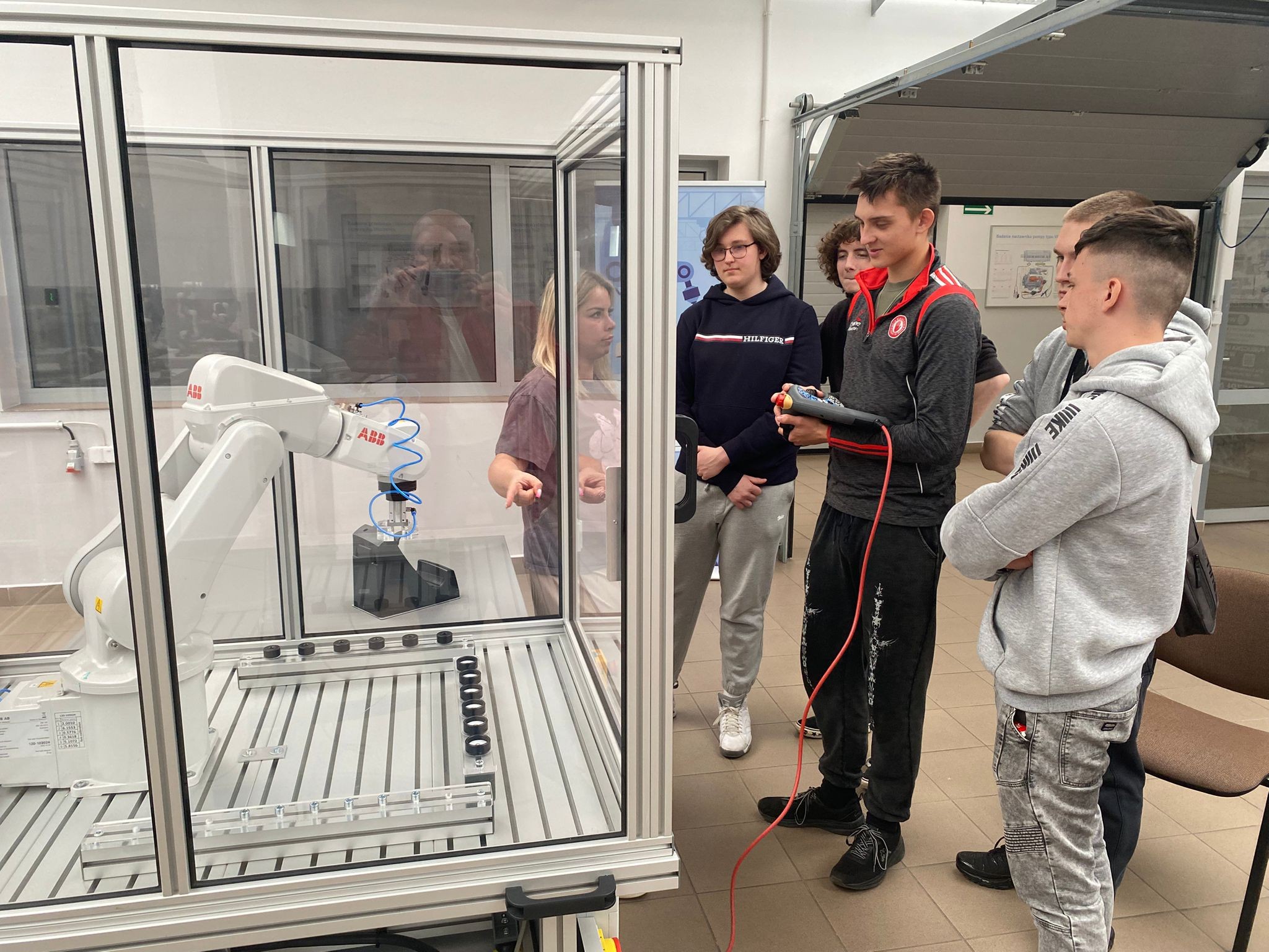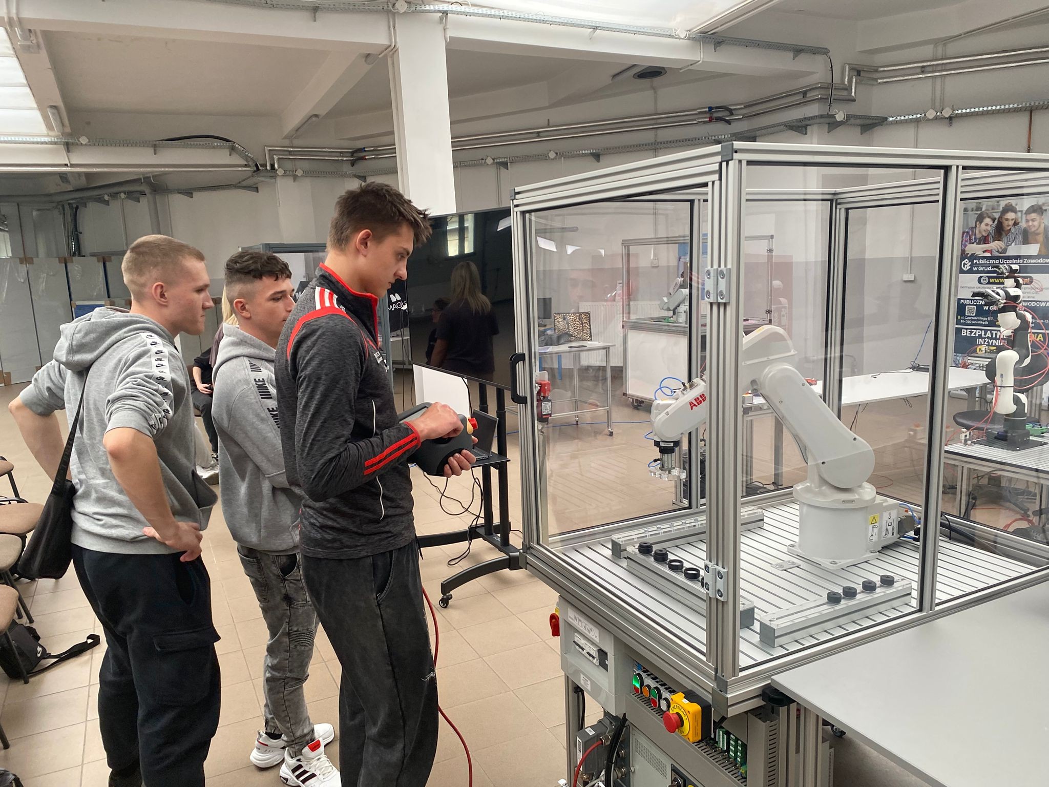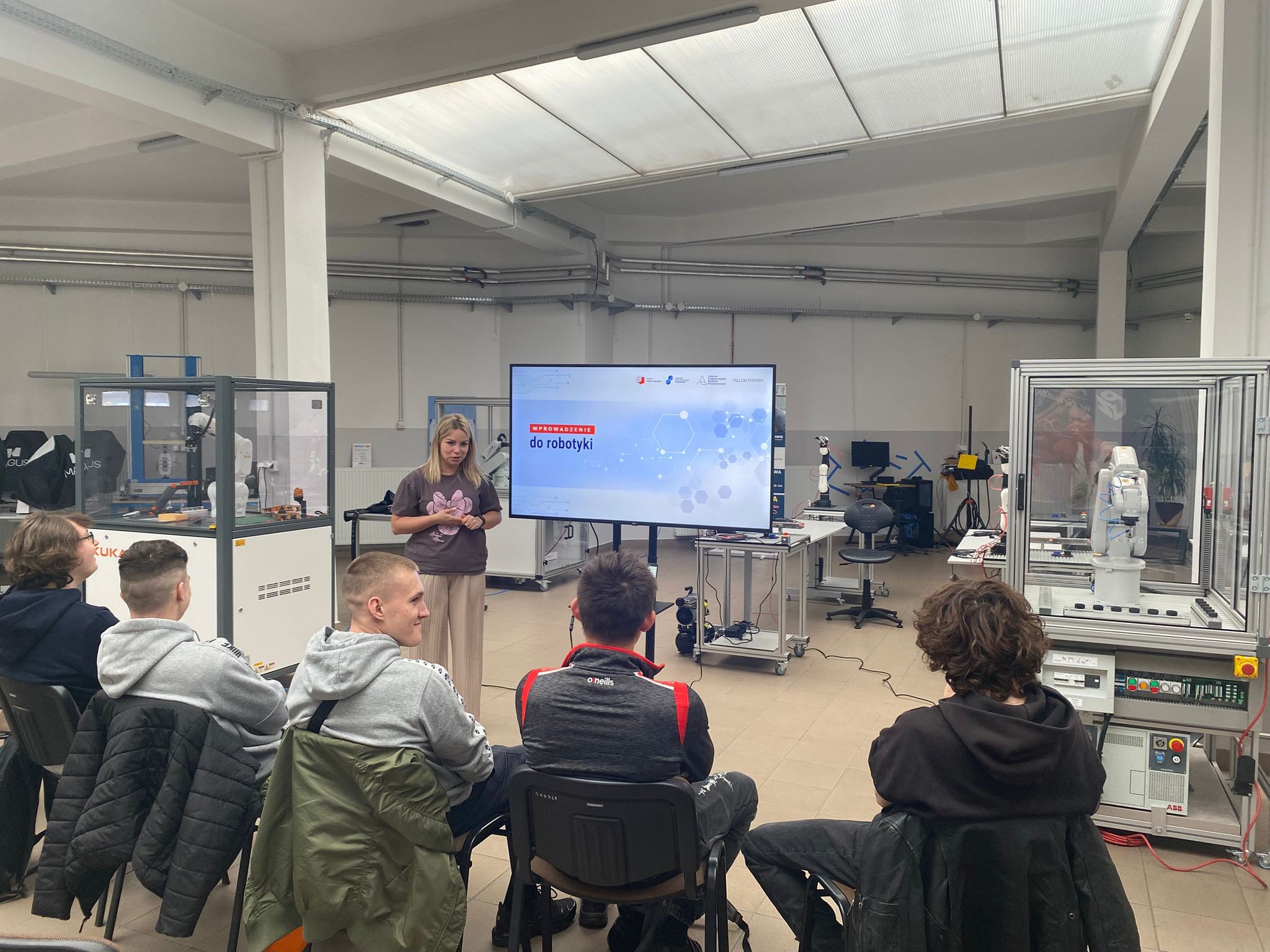 Po wprowadzeniu teoretycznym uczniowie mieli okazję samodzielnie pracować z robotami KUKA i ABB, ucząc się ich obsługi oraz podstaw programowania. Dzięki temu mogli zobaczyć, jak teoria przekłada się na praktykę i jak działają nowoczesne systemy automatyki.