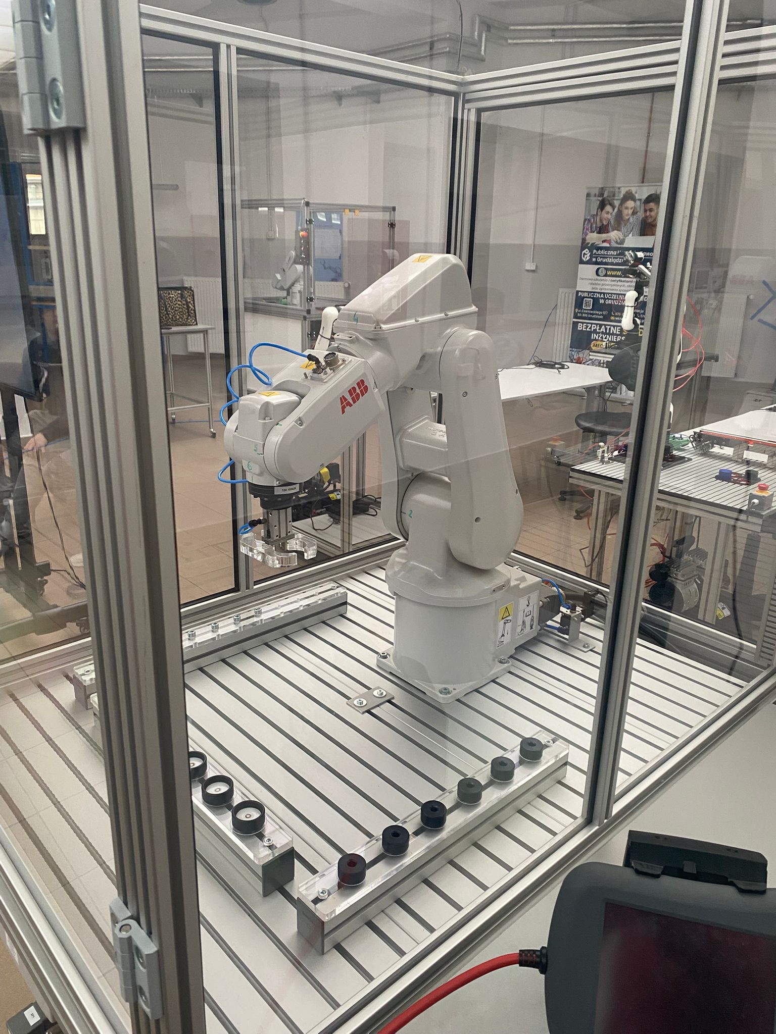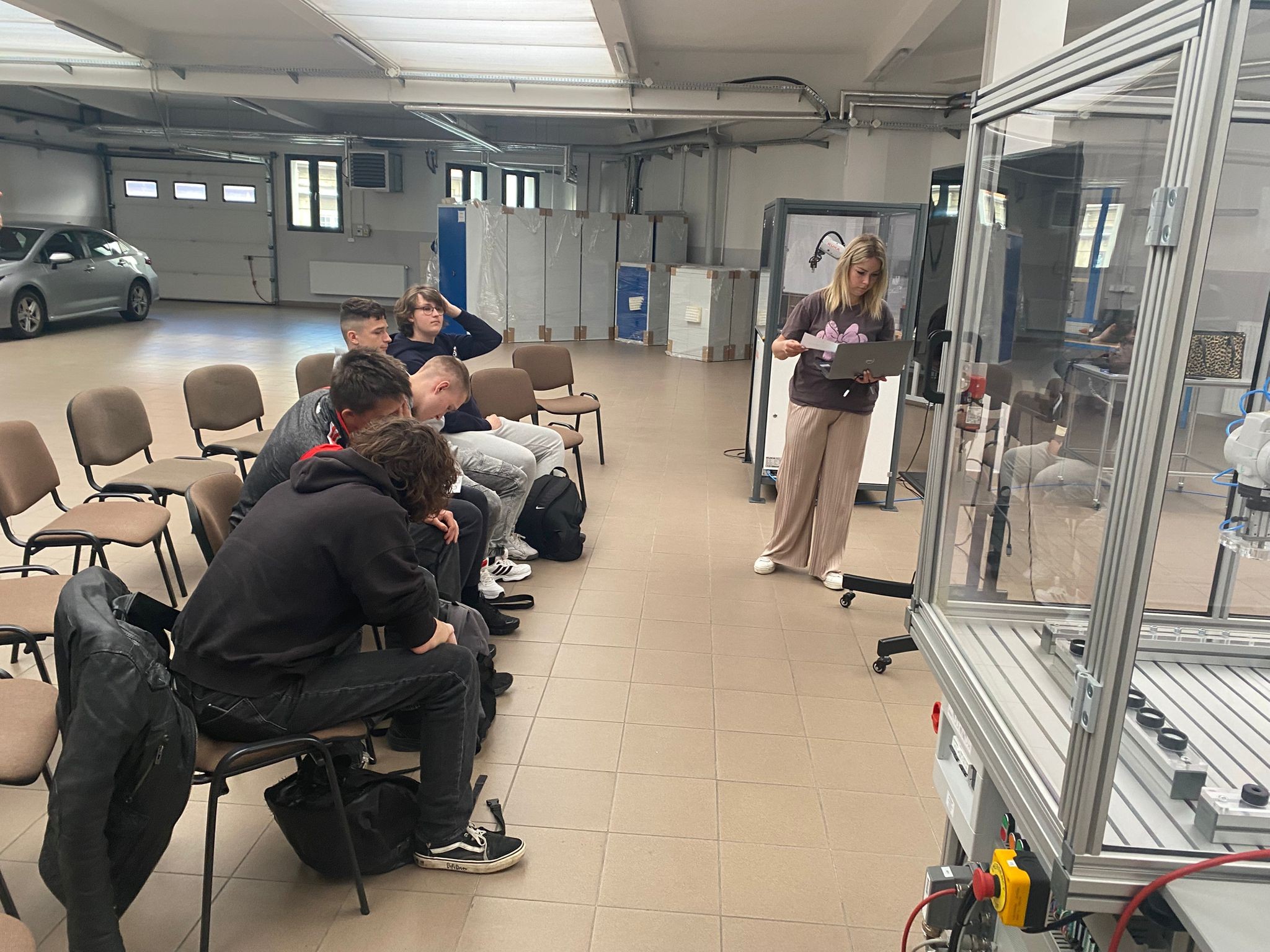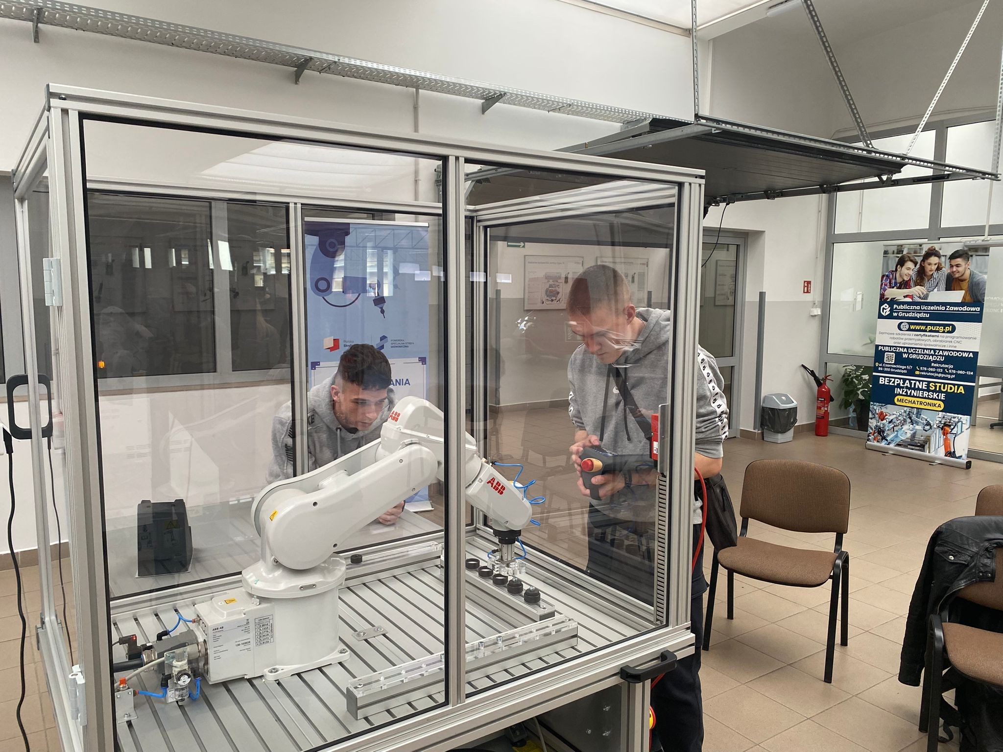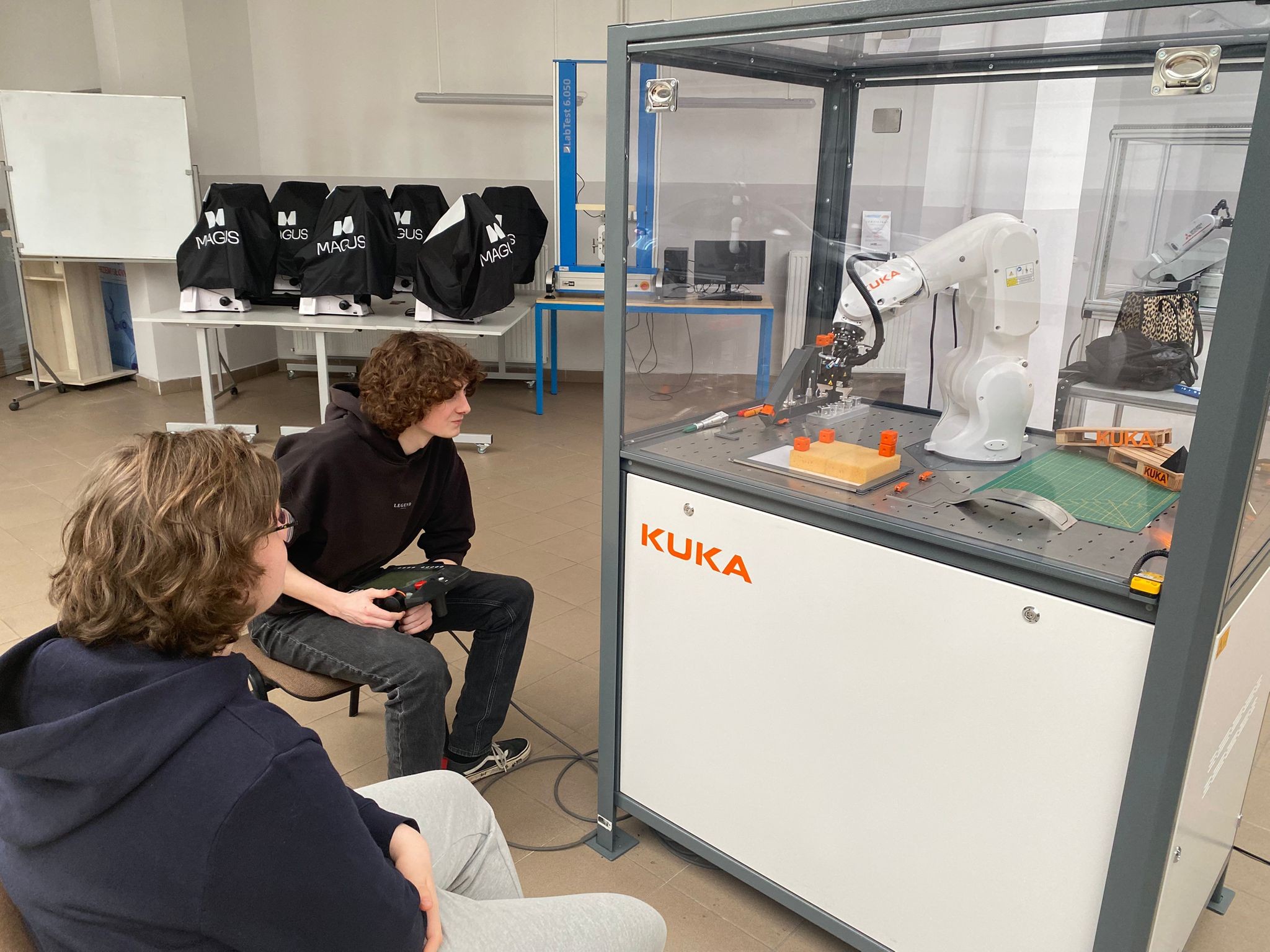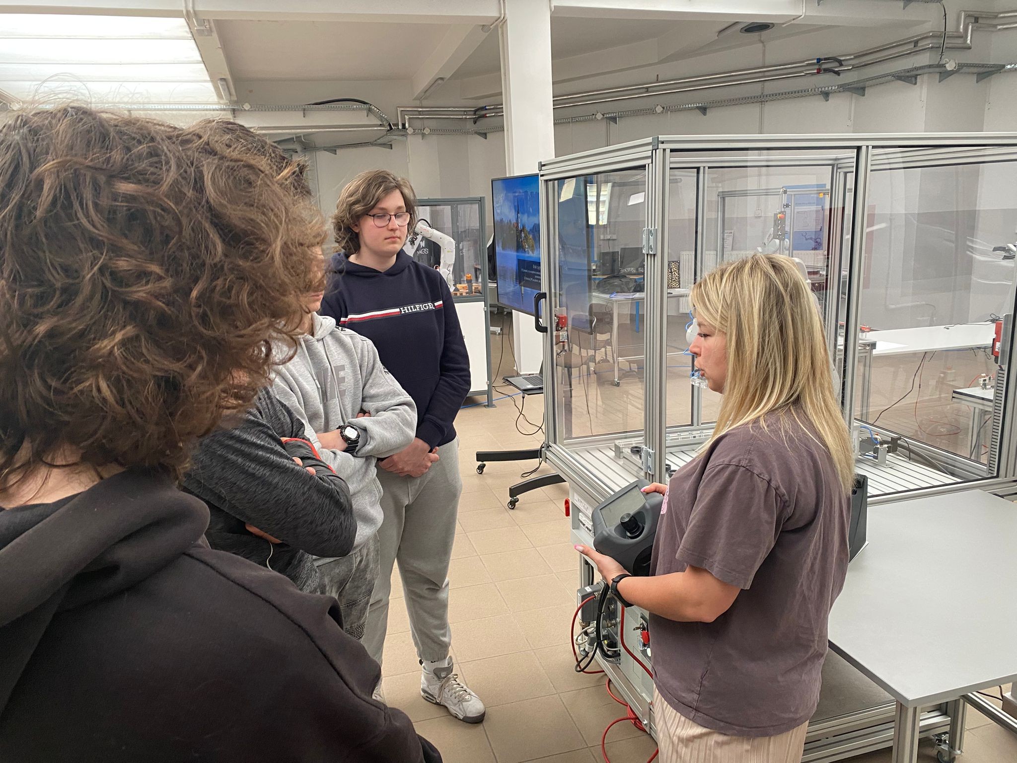 Po wprowadzeniu teoretycznym uczniowie mieli okazję samodzielnie pracować z robotami KUKA i ABB, ucząc się ich obsługi oraz podstaw programowania. Dzięki temu mogli zobaczyć, jak teoria przekłada się na praktykę i jak działają nowoczesne systemy automatyki.