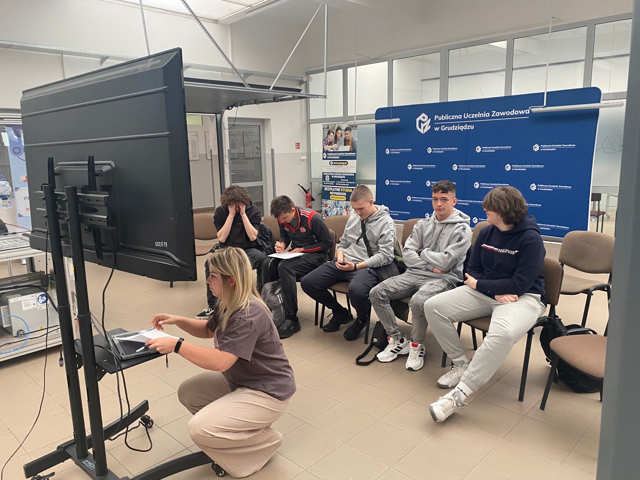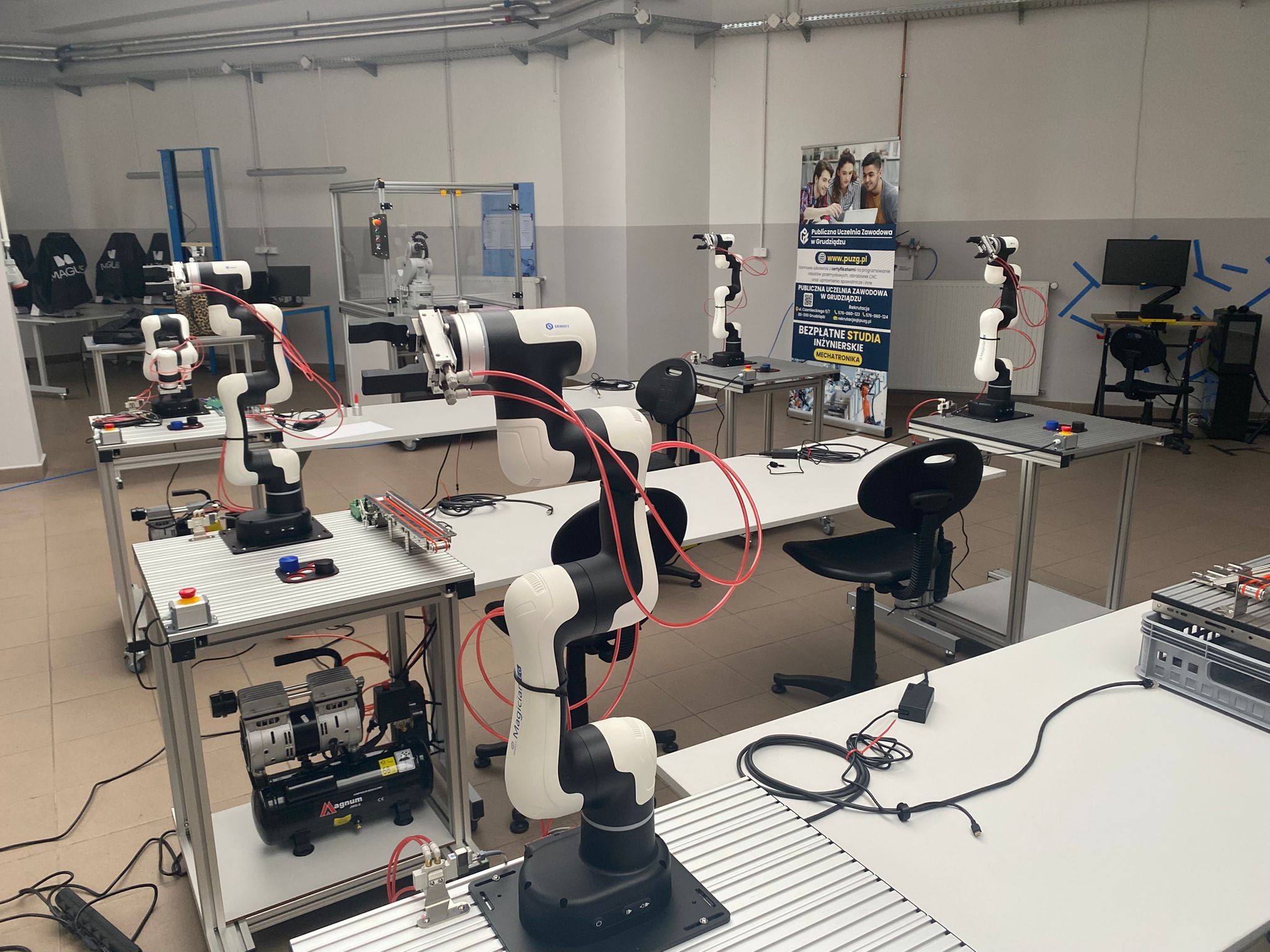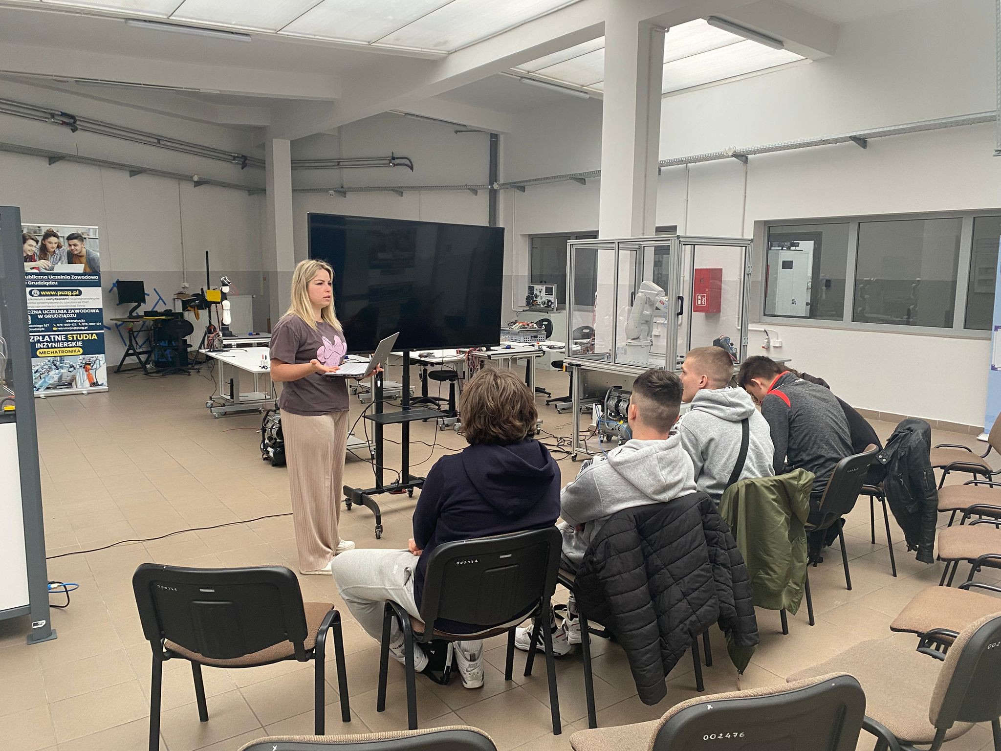 Dziś uczniowie kl. 3 a Technikum uczestniczyli w warsztatach z robotyki w Centrum Programowania Robotów Przemysłowych w Grudziądzu. Zajęcia rozpoczęliśmy od części teoretycznej, w której omówiliśmy rewolucje przemysłowe i ich wpływ na rozwój technologii, poznaliśmy podział i zastosowanie robotów. Rozmawialiśmy również o definicji robotów i ich roli w nowoczesnym przemyśle.