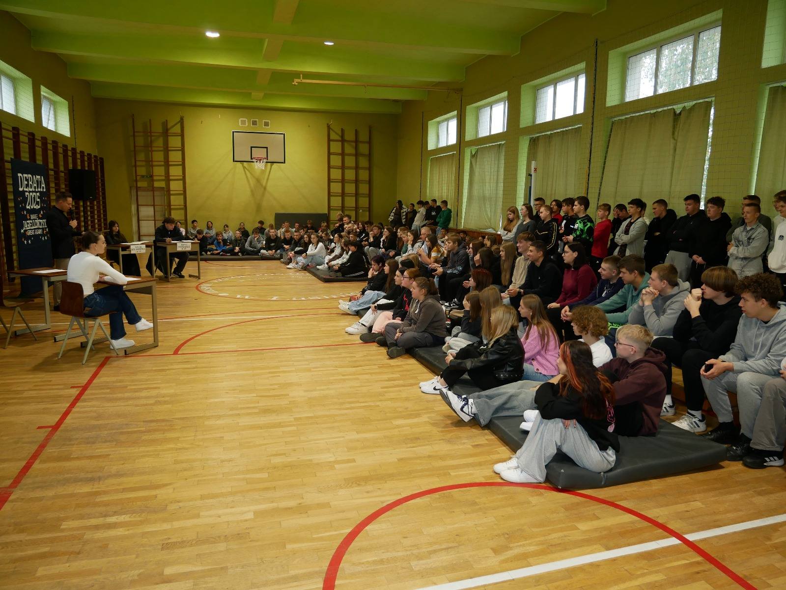 Dziś w naszej szkole odbyła się wyjątkowa debata, podczas której uczniowie kandydujący na przewodniczącego Samorządu Uczniowskiego zaprezentowali swoje pomysły i wizje na nadchodzący rok szkolny.