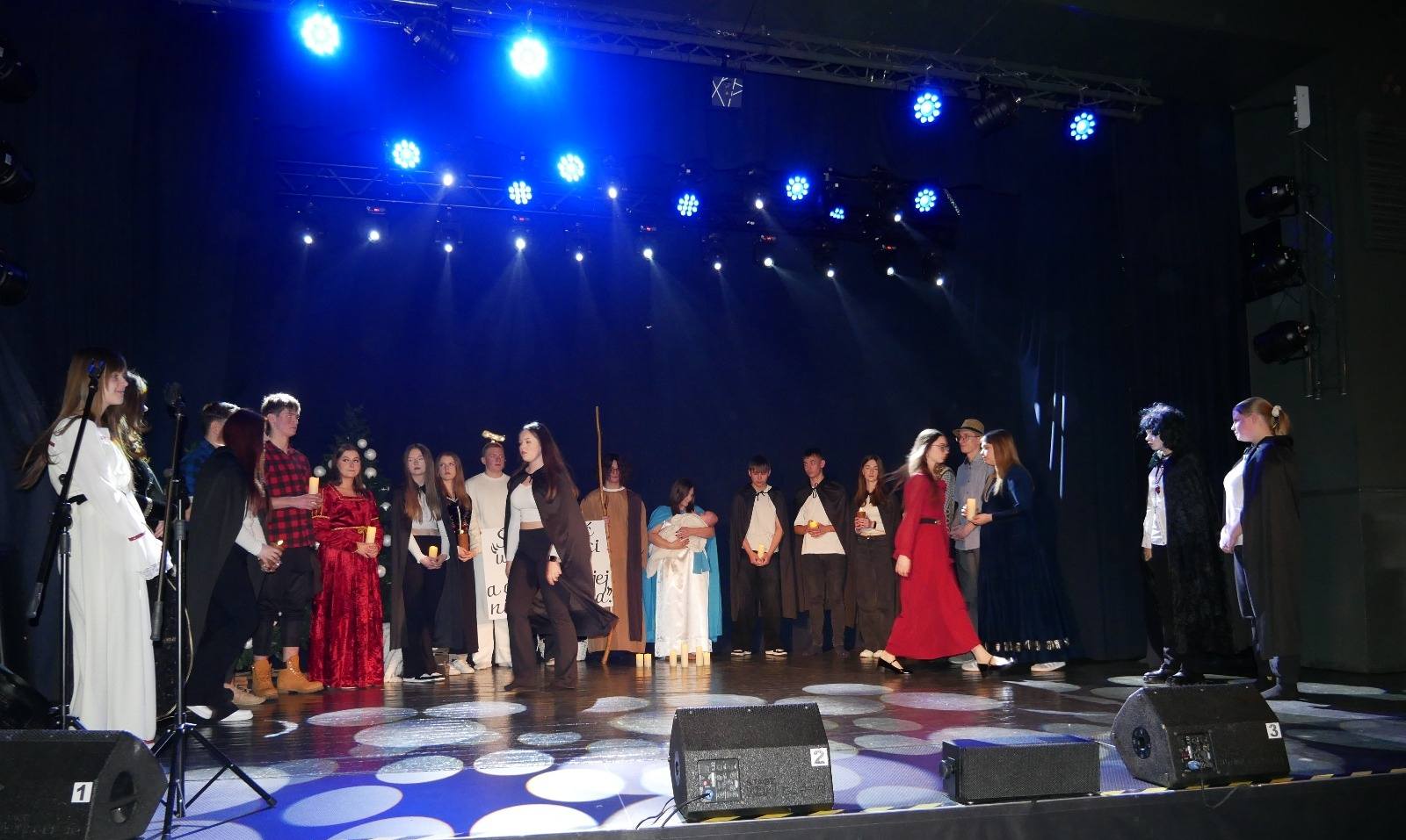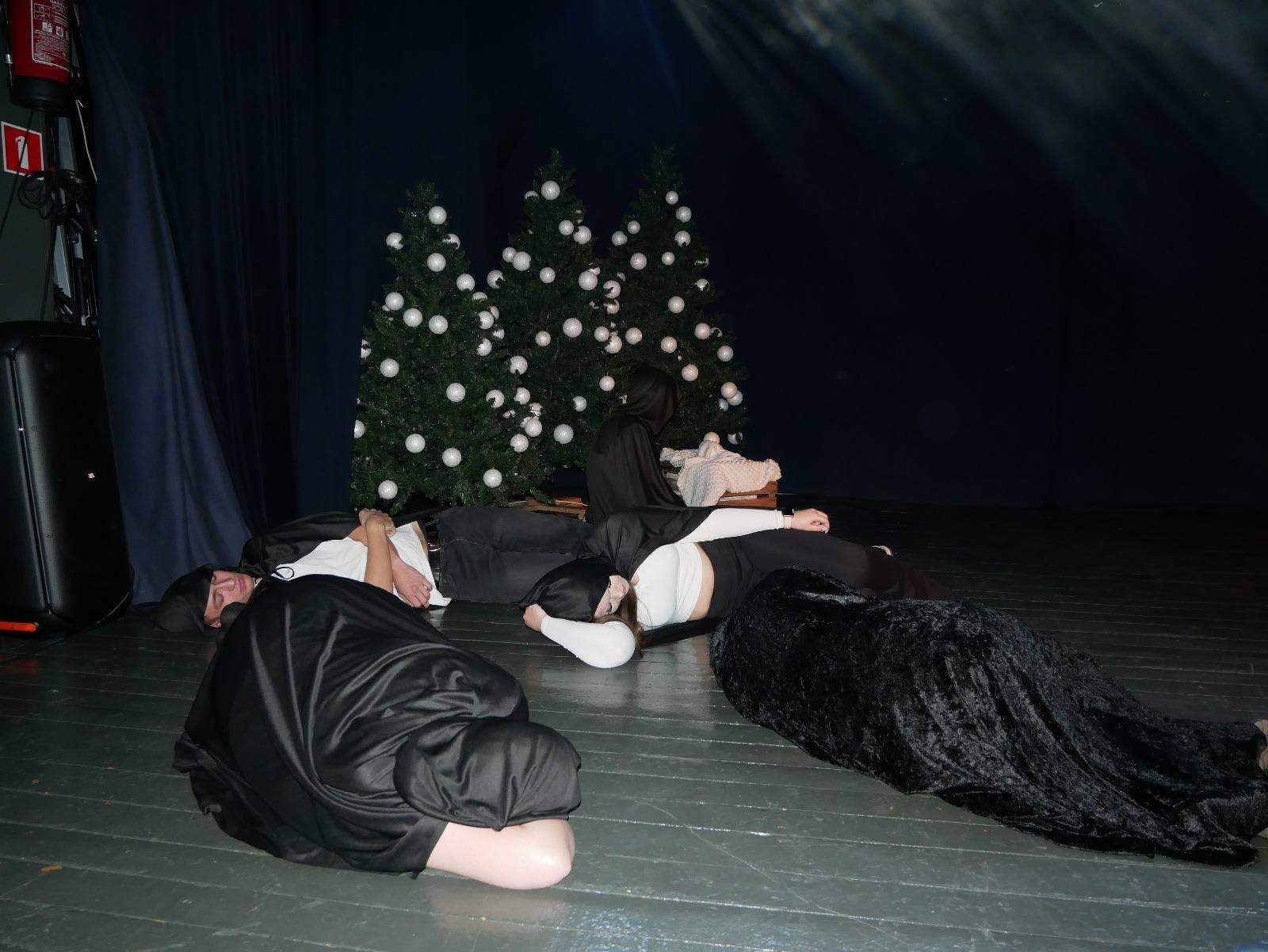 Magia Jasełek w wykonaniu szkolnego koła teatralnego Galimatias. Na scenie spotkały się mrok i światło, a ich opowieść poruszyła serca widzów. Tegoroczne Jasełka były wyjątkową historią o zwycięstwie światłości nad ciemnością, nadziei nad lękiem i dobra nad złem. Dzięki zaangażowaniu młodych aktorów, pięknej grze światłem i symbolice, mogliśmy na nowo przeżyć sens Bożego Narodzenia.