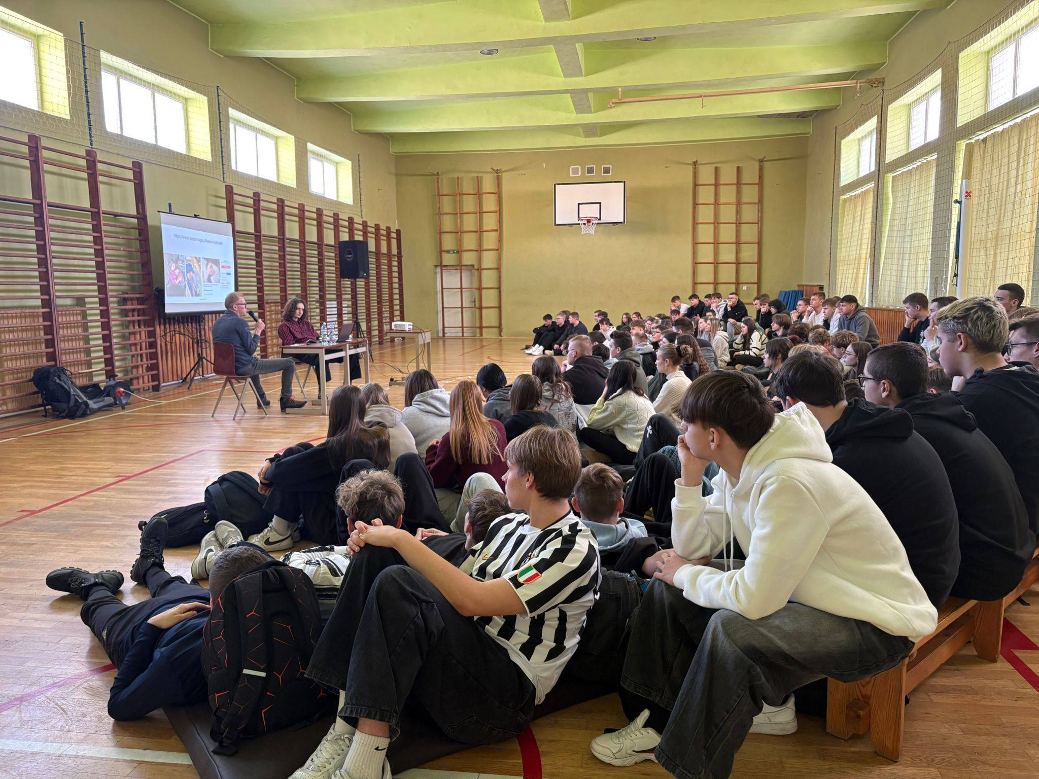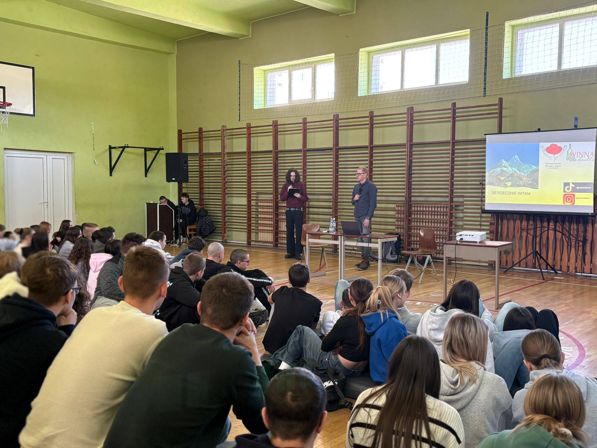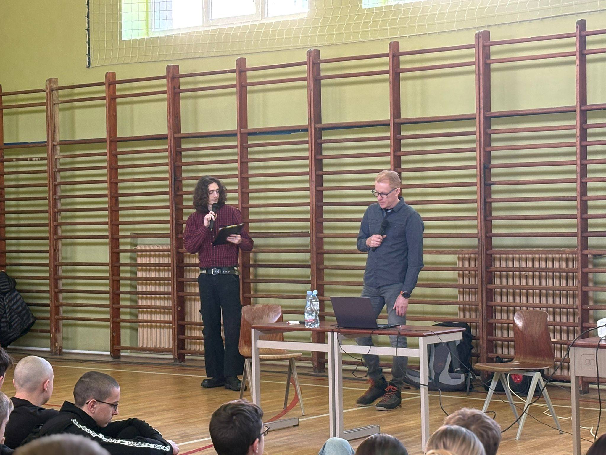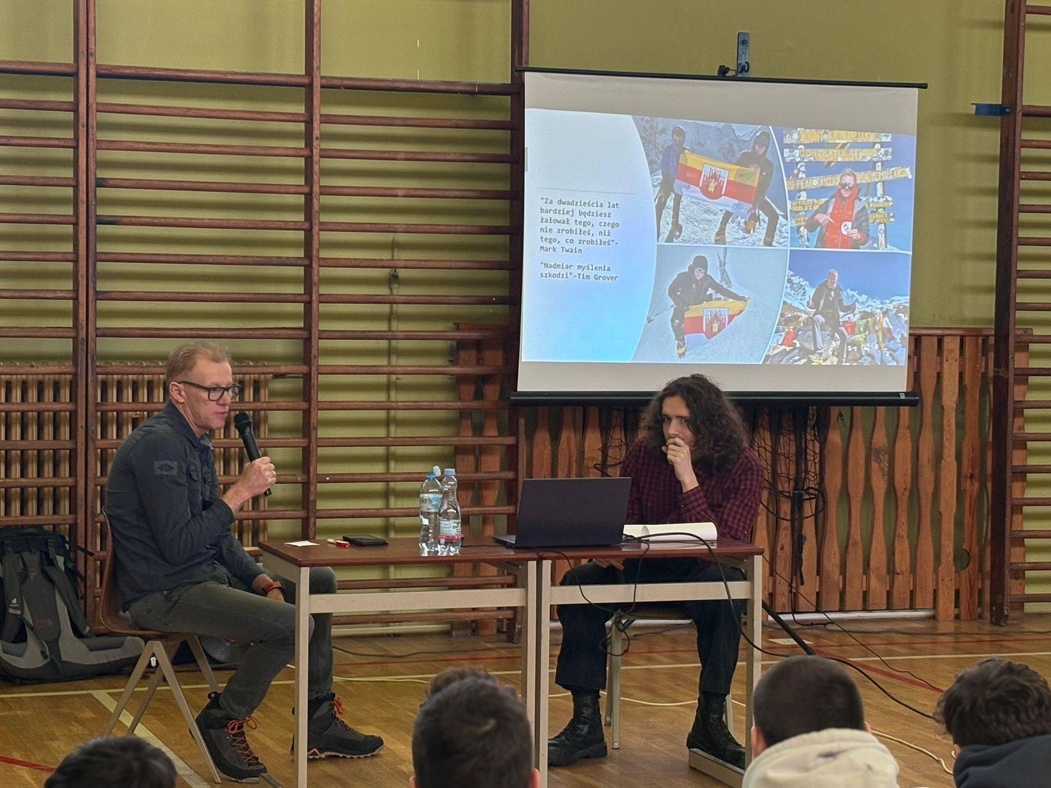 W murach Jagiellończyka gościliśmy osobę wyjątkową – Pana Wojciecha Plessa – podróżnika, który odwiedził już ciekawe miejsca i planuje kolejne podróże. Pan Wojciech podzielił się z nami swoimi doświadczeniami, przeżyciami i historiami, którymi bardzo zaciekawił uczniów. Naszego gościa inspiruje turystyka wysokogórska, która jest formą turystyki kwalifikowanej. Uczniowie dobrze wiedzą, że taka forma turystyki wymaga specjalnego przygotowania i wiedzy a przede wszystkim doskonałej sprawności fizycznej. Pan Wojciech przedstawił krok po kroku, jak podróże uczą odwagi, otwartości i pokory. Podczas wystąpienia nie zabrakło otwartych pytań, nawet tych bardzo szczegółowych. Pan Wojciech dał nam również lekcję empatii, gdyż podczas swojej najbliższej podróży wspierać będzie zbiórkę charytatywną na rzecz Kewina Kubiczek, który choruje na dystrofię Salzmanna i zapadającą się klatkę piersiową. My również możemy pomóc – szczegóły znajdują się pod linkiem https://www.siepomaga.pl/kewin-kubiczek